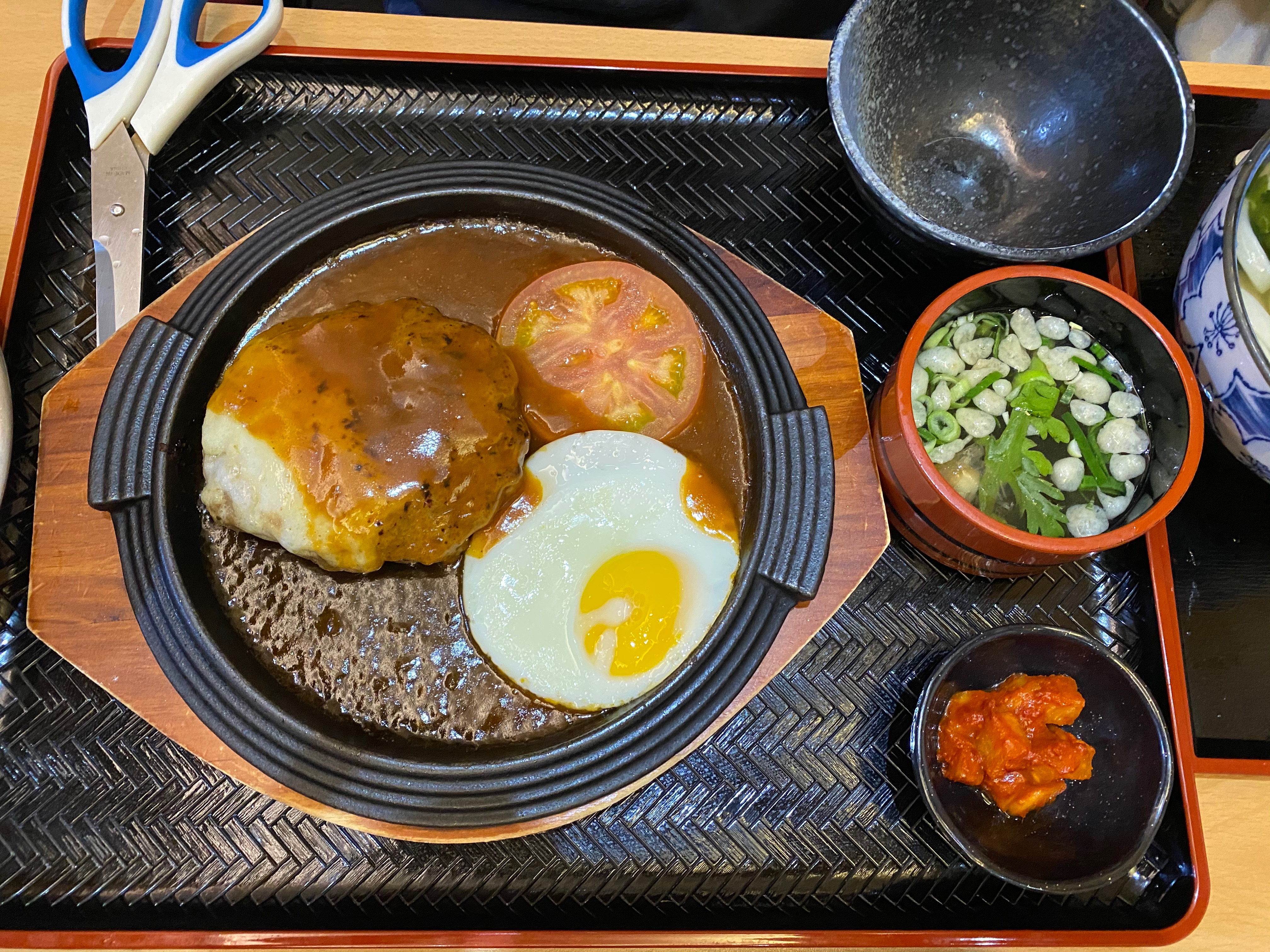 면발이 탱탱하고 쫄깃쫄깃하고 씹히는 맛이 일반 우동의 그런 맛하고는 비교가 안되는 그런 식감을 가진 수타면인거는 확실합니다. 그런데 놀랍게도 그렇게 우동을 좋아하는 5살 아들이 젓가락질 몇 번 만에 식탁에 놔버리는 거 아니겠습니까? 식성이란 게 지극히 개인적인 부분이라 아무리 맛난 집이라도 본인 입에 맞아야 맛나게 먹는데 이놈이 젓가락을 놓을 놈이 아닌데.... 일부러 아키라 우동으로 매운맛이 전혀 나지 않는 우동을 시켜줬건만... 붓가케 우동은 뜨거운 국물이 안 들어가서 그 면발의 식감이 흡사 고무줄 같다고 해야 할까나... 질긴 고무줄이요... 뭐 그래도 맛이 소스와 묘하게 잘 어우러져서 저희들은 잘 먹었는데 말이죠. 아들이 아키라 우동을 완강하게 거부하고 있어서 결국 우동메뉴는 포기를 하고 함박 메뉴로 아들을 달래서 한 끼를 근근이 해결봤더랬습니다. 그럼 아키라 우동은 아들이 왜 거부를 했을까요? 그래서 저희들이 먹어봤습니다. 참고로 저희 부부는 평소에도 단짠, 맵디매운, 향이 강한 뭐 이런 맛들 거부하고 심심하고 재료 본연의 맛이 다 살아나는 그런 간이 별로 안쎈 음식들을 좋아합니다. 그래서 붓가케우동이 강한 쫄깃한 식감을 가진 면보다는 전체적인 간이 저희 부부 입맛에 잘 맞아 맛있게 먹었답니다. 다시 아키라 우동으로 넘어가서 이 우동을 맛보는 순간 이게 뭔 맛이지... 넘 심심하고 약간 느끼하다고 해야하나? 아들이 젓가락을 빨리 놓은 이유가 납득이 되더군요. 심심한 간으로 즐기는 저희 부부에게도 이 아키라 우동 맛은 지나치게 너무 간이 심심하다... 반면 함박은 진짜 가성비가 좋으면서 맛도 훌륭하달까요? 빅 사이즈 덕분에 아들이 반 먹고 저희들도 반 나눠 먹고 ~ 배부르게 잘 먹었습니다. 담번에 아키라 우동은 셋트로 다시 도전해 봐야겠습니다. 함박은 무조건 시켜야 되는 메뉴입니다. 강추!!!