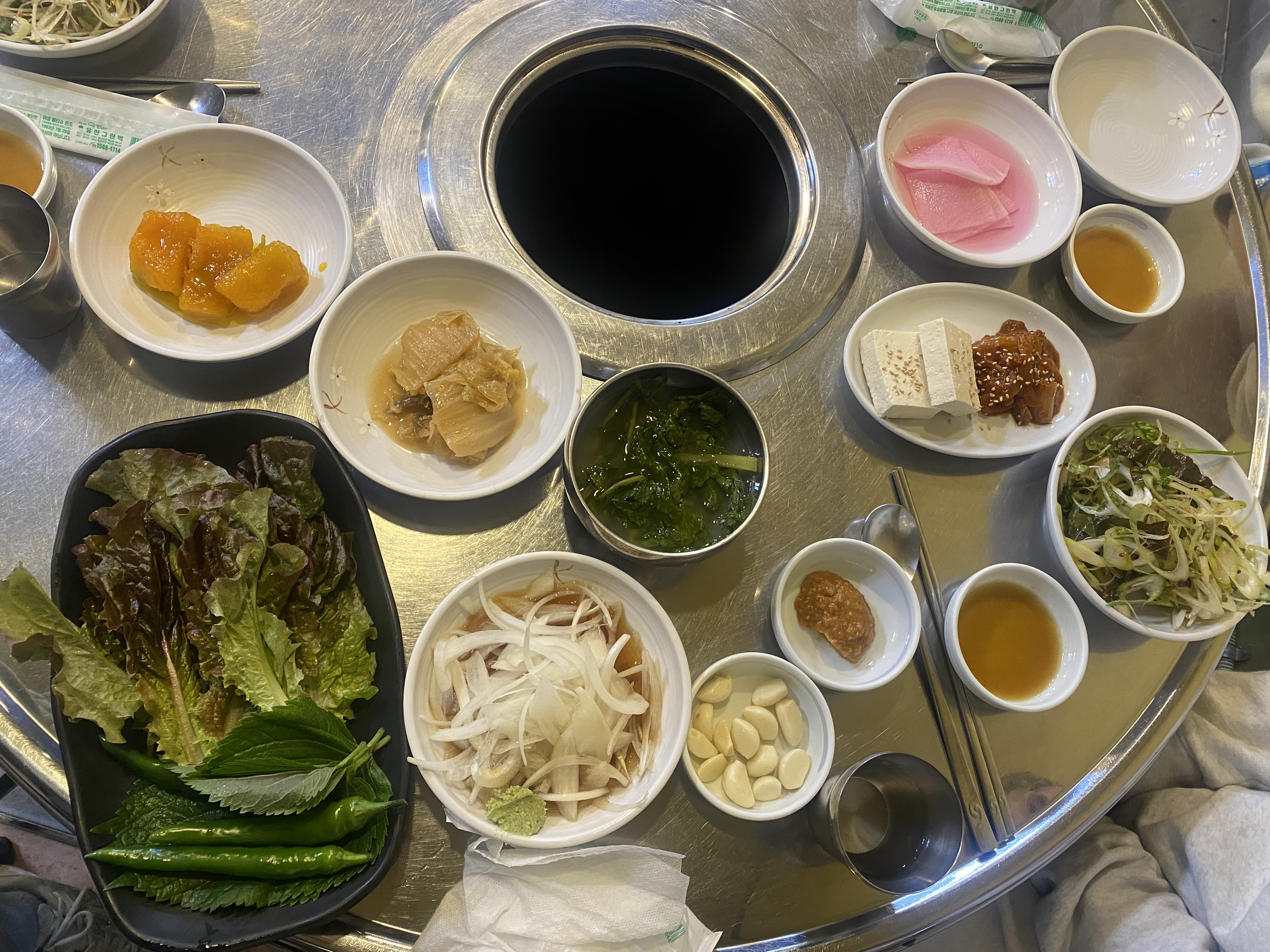 기본 찬이 세팅되었는데 밑반찬만 맛봐도 이집 맛집인지 아닌지 알 수 있지 않습니까? 저는 호박 조림을, 아들은 두부 김치를 맛봤는데 딱 답 나왔습니다. 이집 찐 맛집이다~~!!! 직접 다 담근 반찬들이라 맛이 쫙쫙 붙습니다. 전 고기 나오기 전 호박 조림 두 접시 클리어해버렸지요. 너무 맛있었어요^^