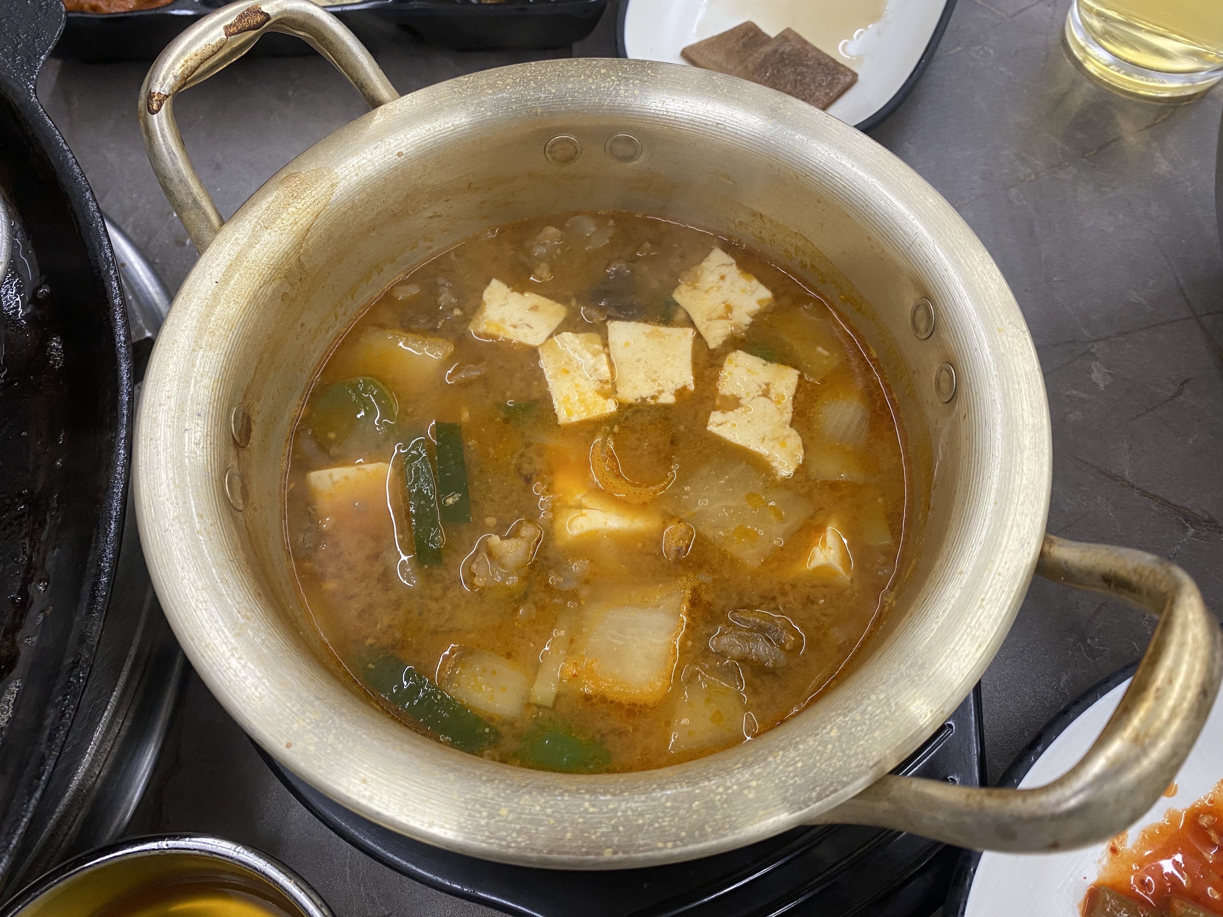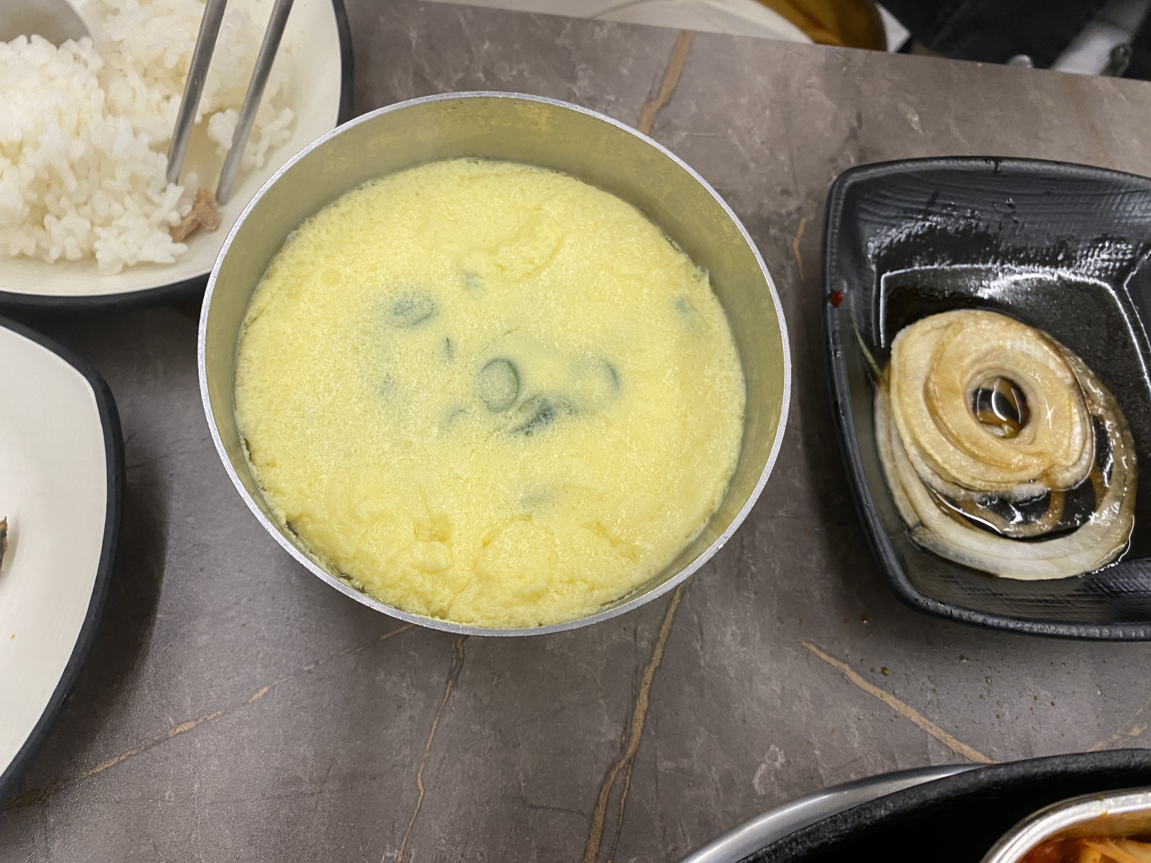 배가 너무 고픈 관계로 된장찌개를 주문했고요~ 메뉴에는 없었지만 초3 아들의 간절한 계란찜 외침에 사장님이 직접 집에서 먹는 계란찜 스타일로 요리해 주셨습니다.
