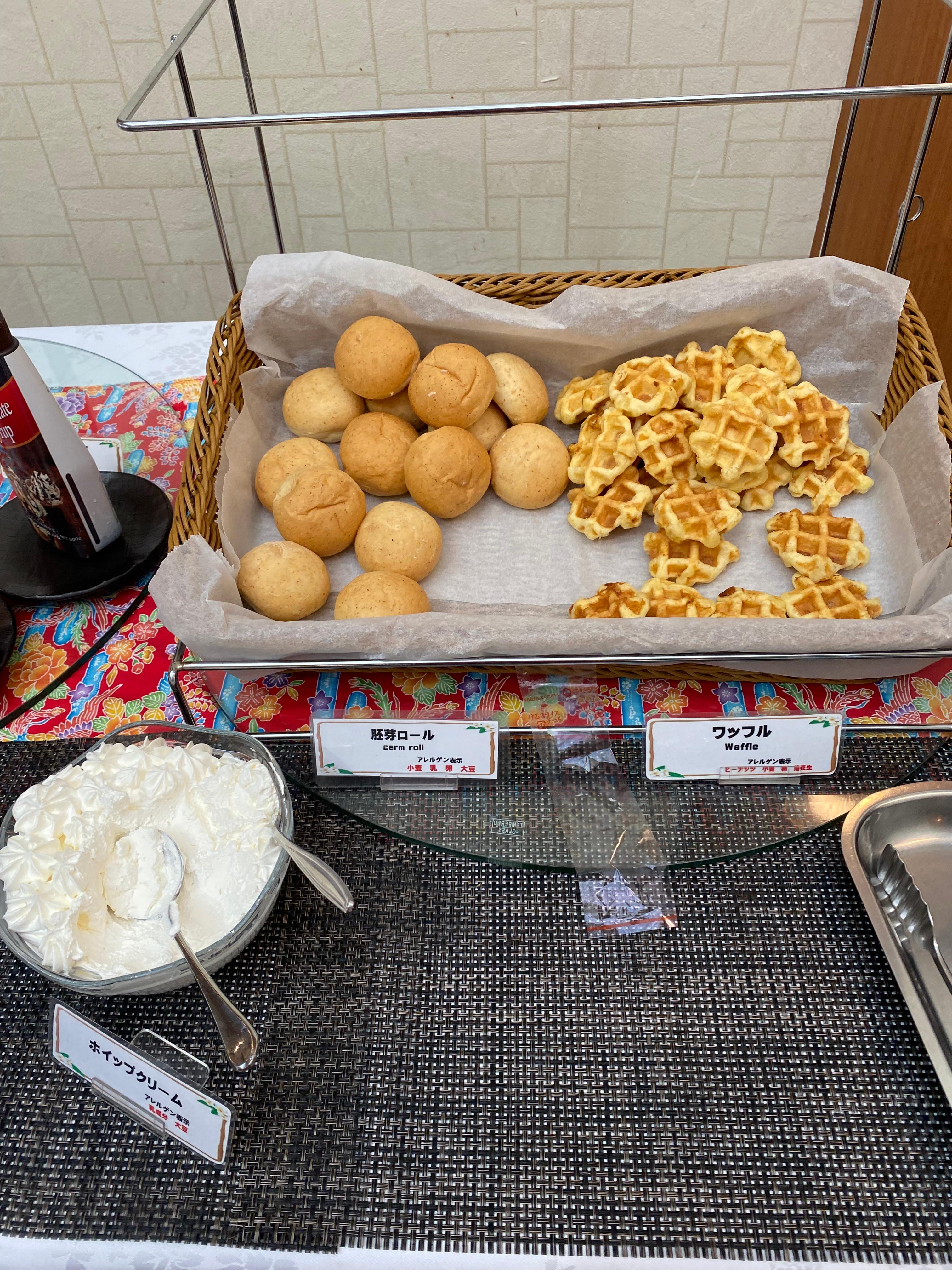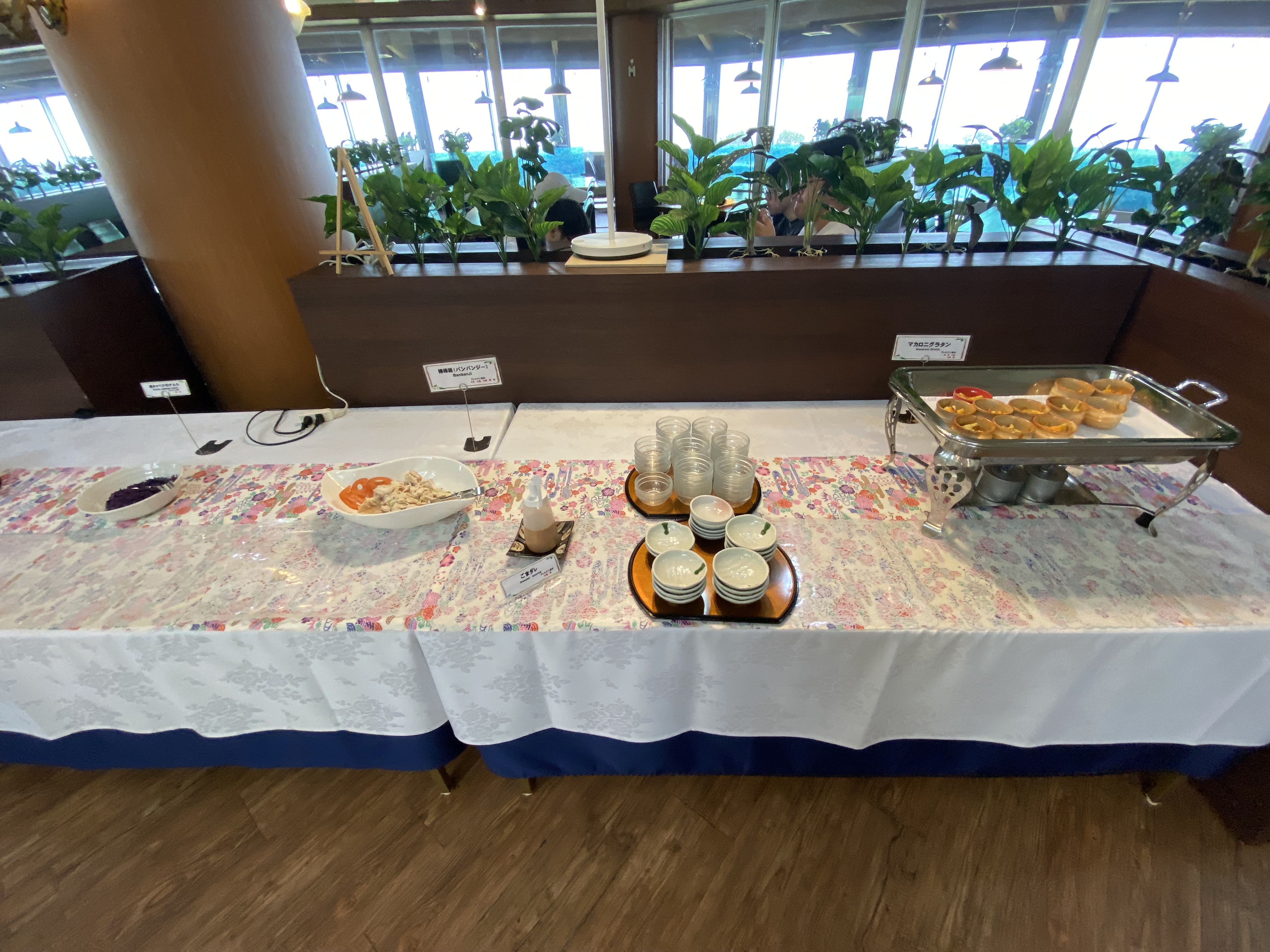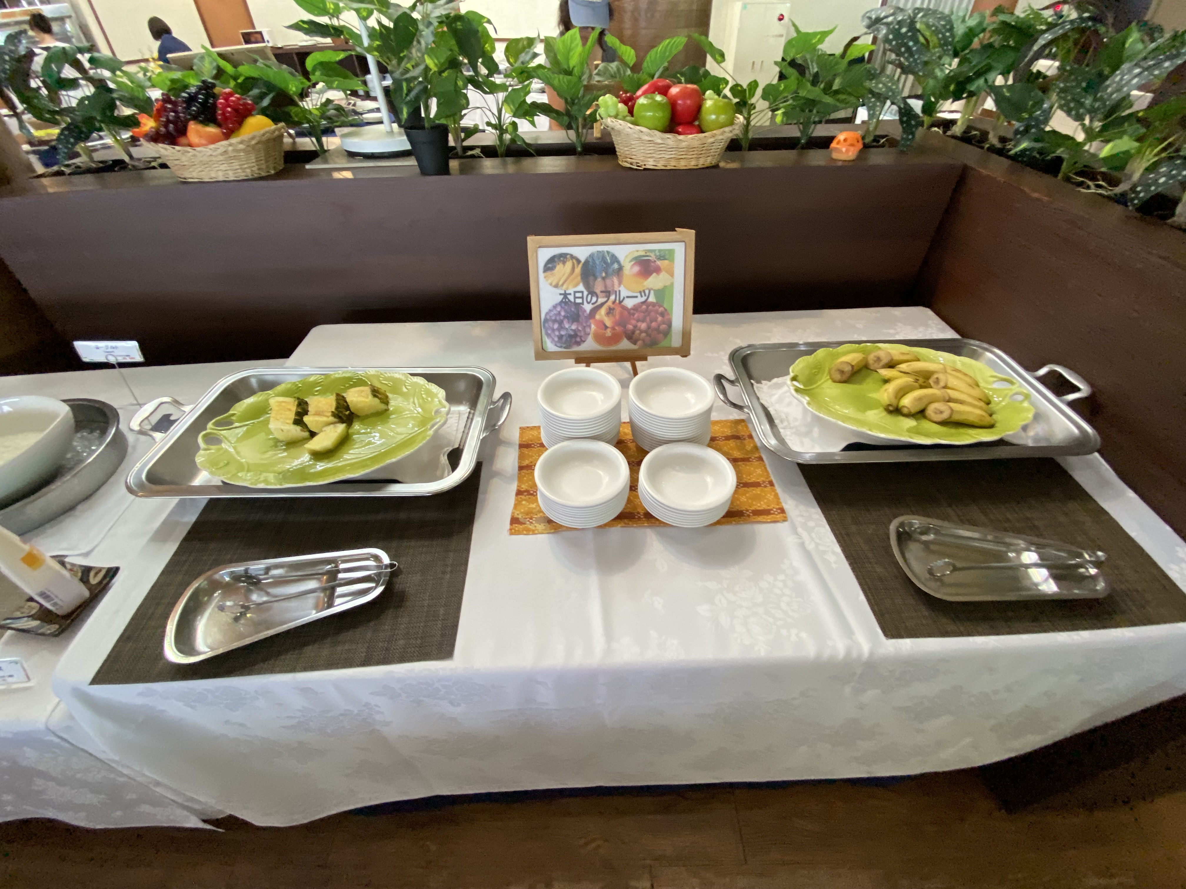 오키나와산 파인애플과 바나나가 디저트로 준비되어 있고요, 요구르트와 시리얼에 특이하게도 망고 시럽이 있습니다. 전 뷔페 요구르트는 꿀과 시리얼 조합을 최고로 쳐주는데 요 망고 시럽이 아침 입맛을 확 당기게 만들어 줬습니다. 너무 맛있었다는~~~