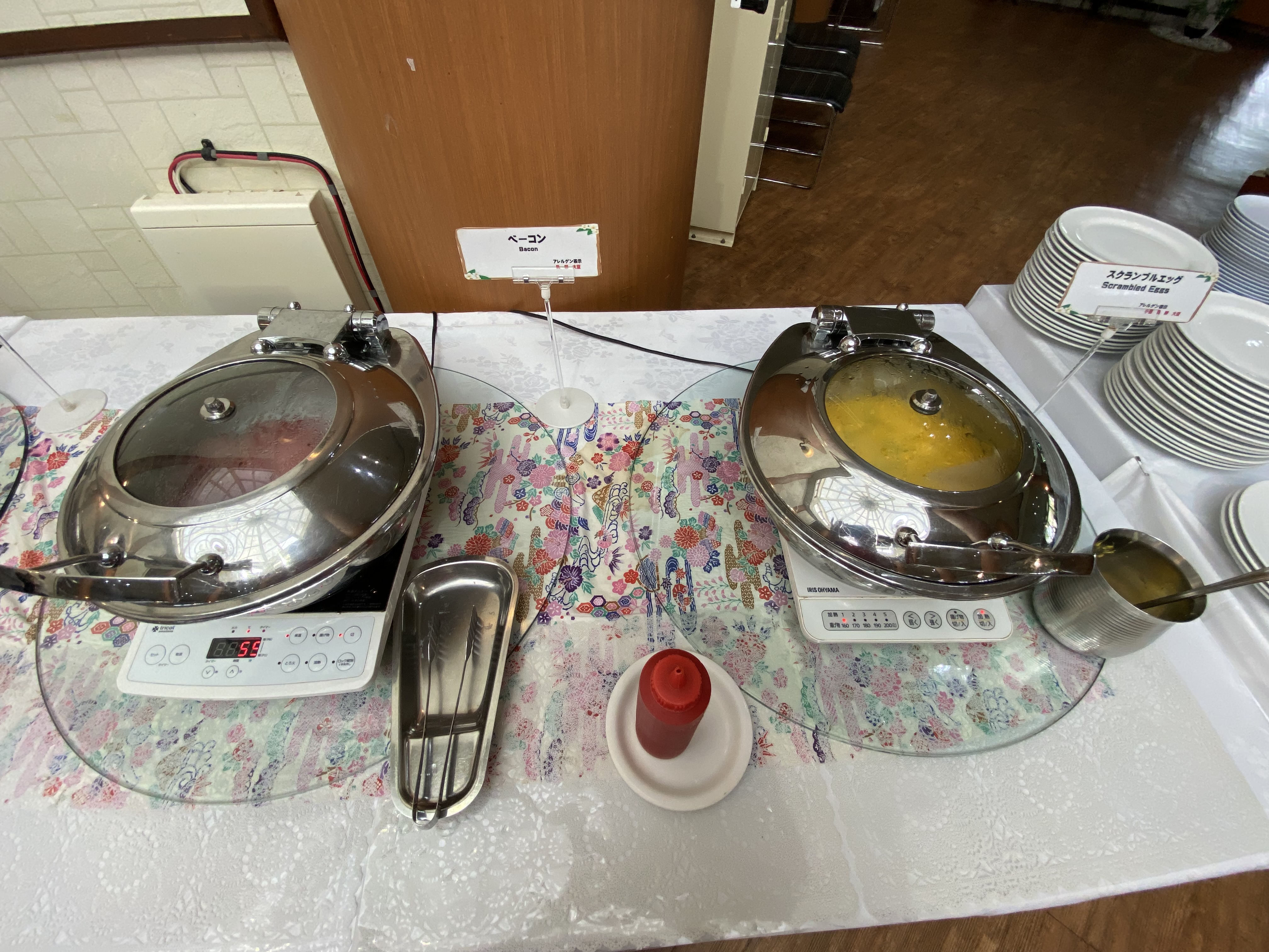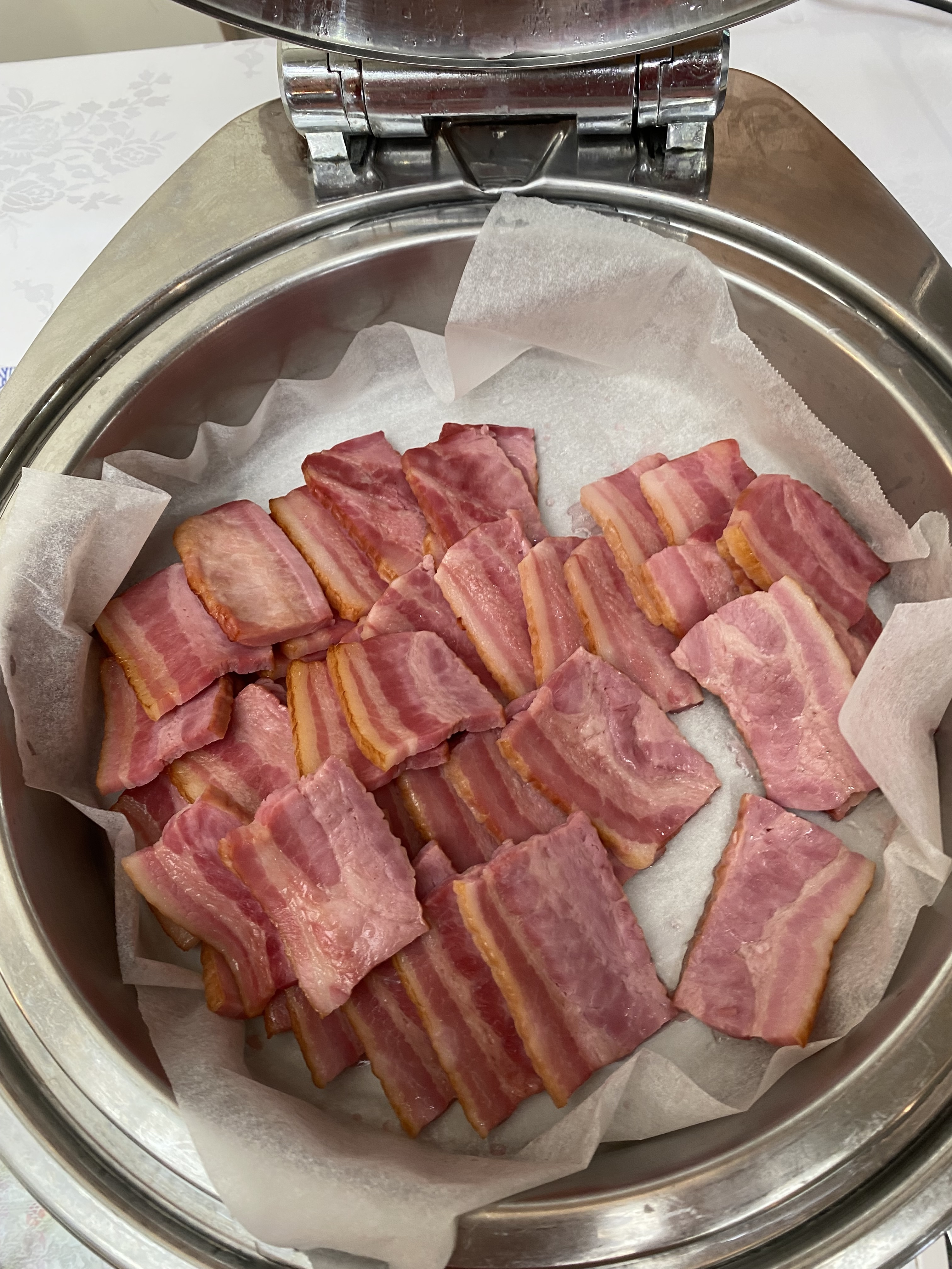 조식 뷔페의 시그니처 같은 코너죠~ 바로 스크램블과 베이컨입니다. 베이컨은 두툼한 식감을 느낄 수 있어서 좋았고 스크램블은 이렇게 크리미하고 거의 반숙 수준으로 나오는 스크램블은 처음 봤습니다. 첫 맛에서는 살짝 노른자 비린내가 나기도 했으나 너무 부드럽고 마치 스크램블 죽 같다고 할까요? 맛있었습니다. 요것도 두 접시 꿀꺽!!