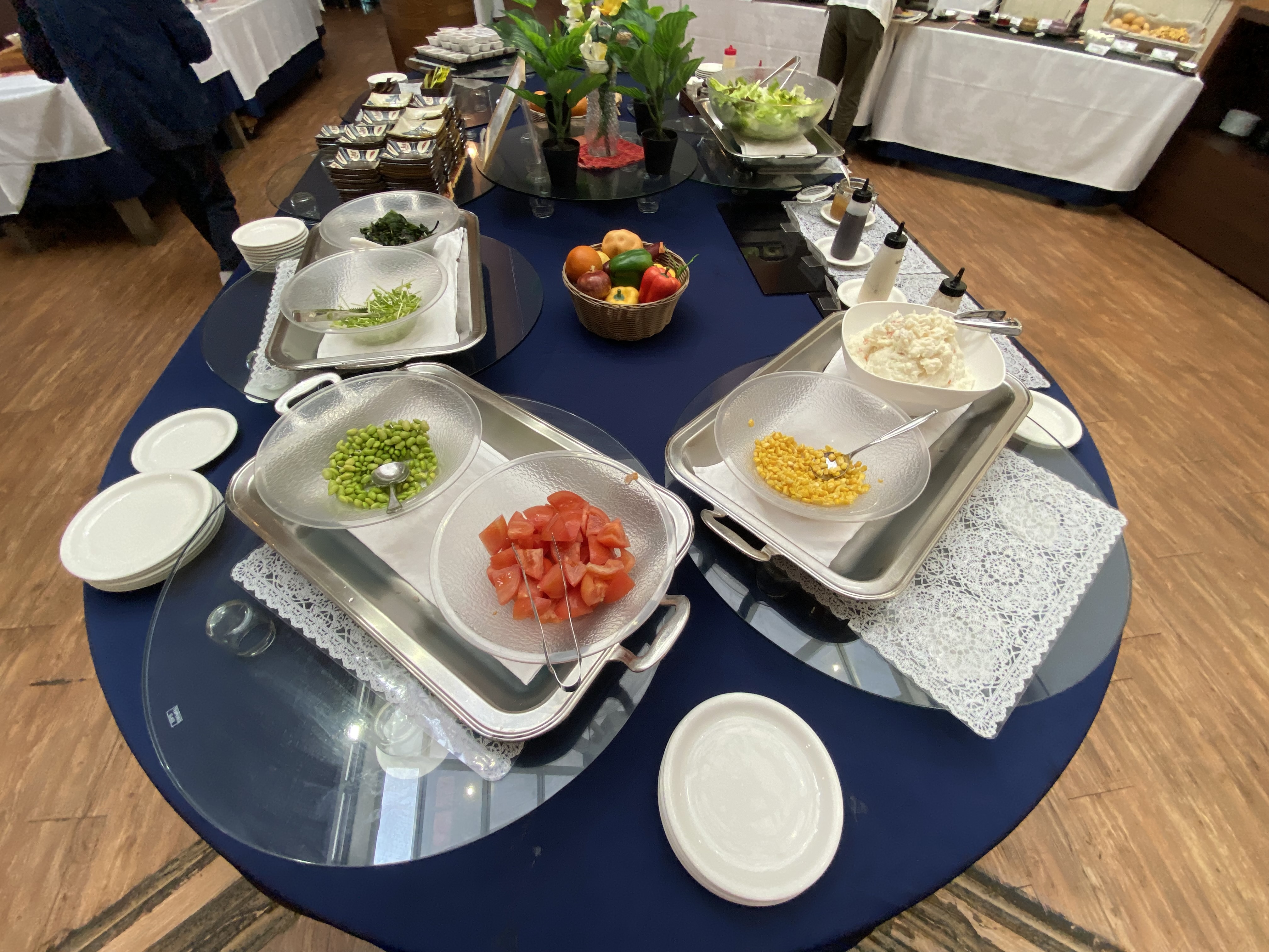 샐러드와 낫또, 완두콩 같은 콩도 있었는데 낫또 완전 제 입맛 원픽이었고 토마토가 왜 이리 신선하고 맛나던지 두 접시 거푸 토마토만 가져다 먹었습니다.