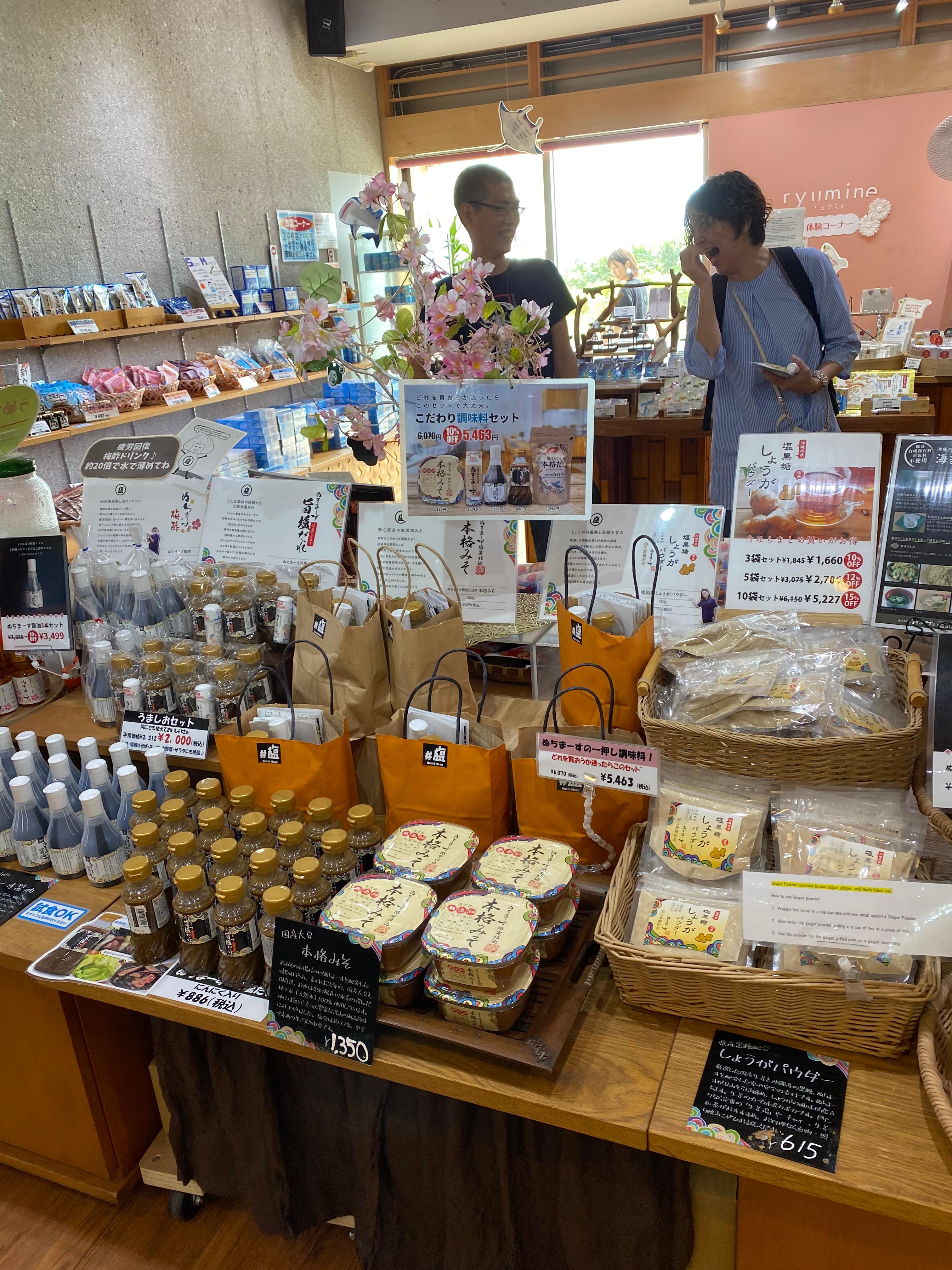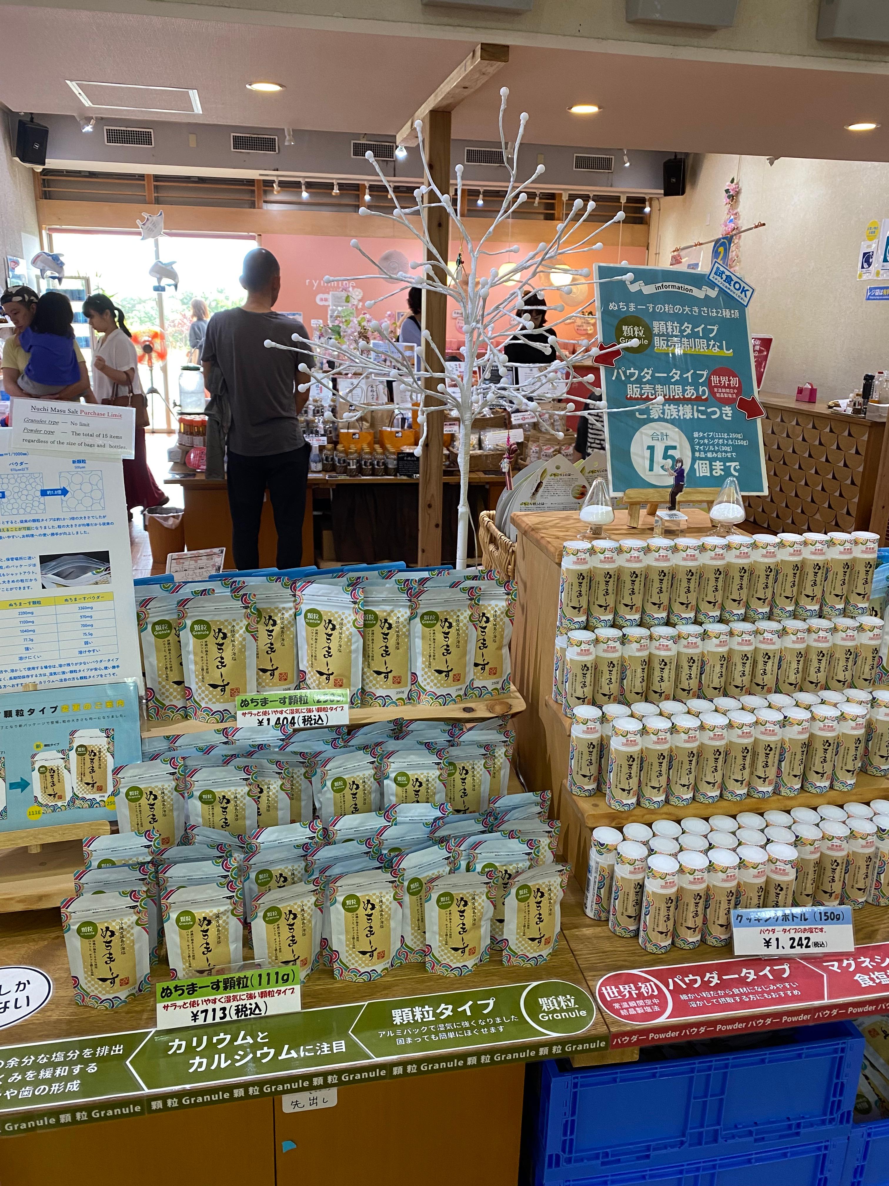일본 사람들 괜히 자기 얼굴 찍히는 거 불편할까 봐 얼른 없는 곳에 제품 사진만 후다닥 담아봤는데 저거보다 훨씬 많은 누치마스 소금 제품들이 진열대에 한가득 놓여있습니다. 시식 코너도 있는데 저희는 아주 작은 오리지널 소금 한 통만 구입했습니다.