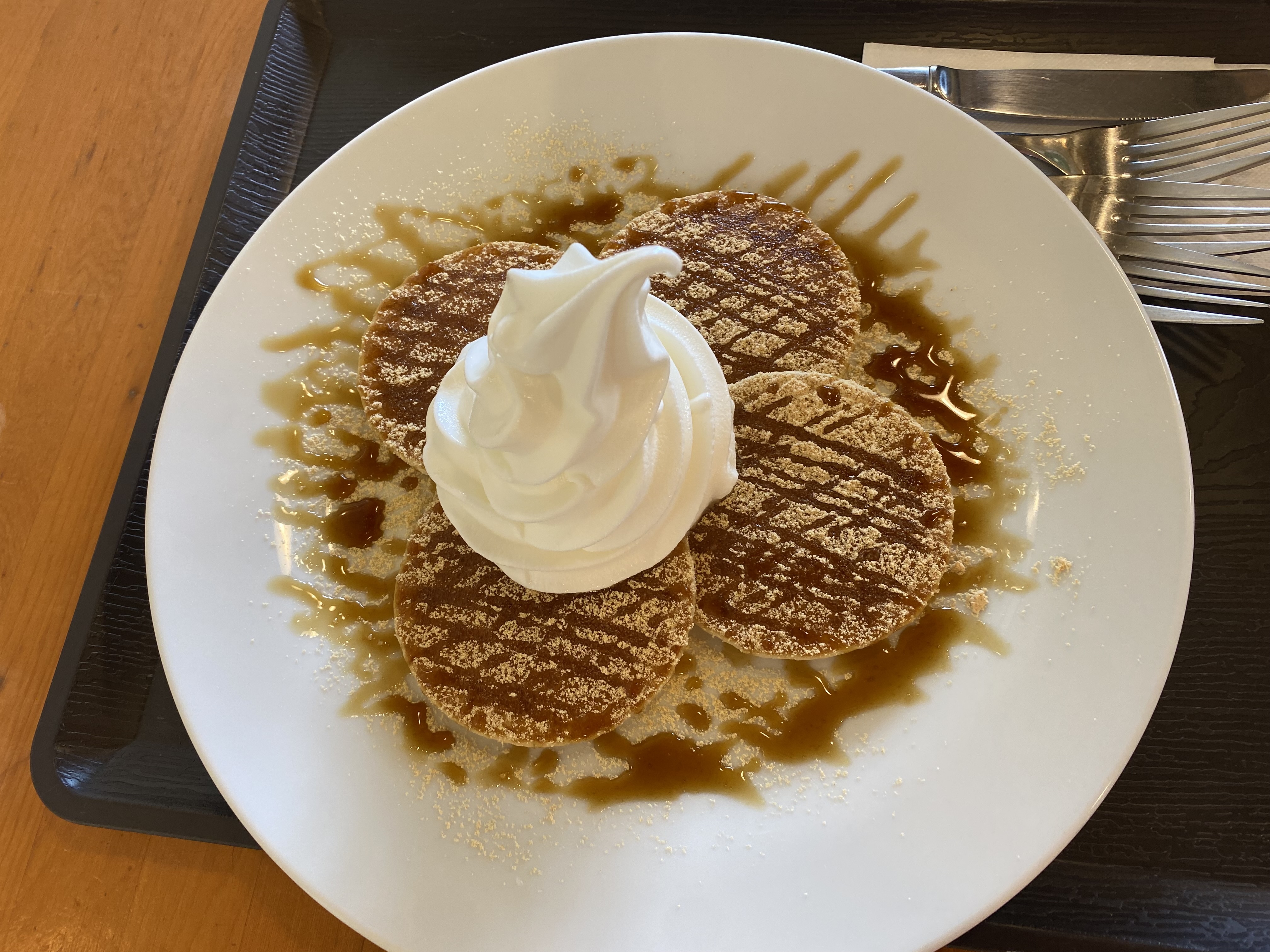 팬케이크 소금 소프트아이스크림 주문했습니다. 가격은 단품으로 950엔, 음료 포함하면 1,250엔 / 저희는 단품으로 주문!