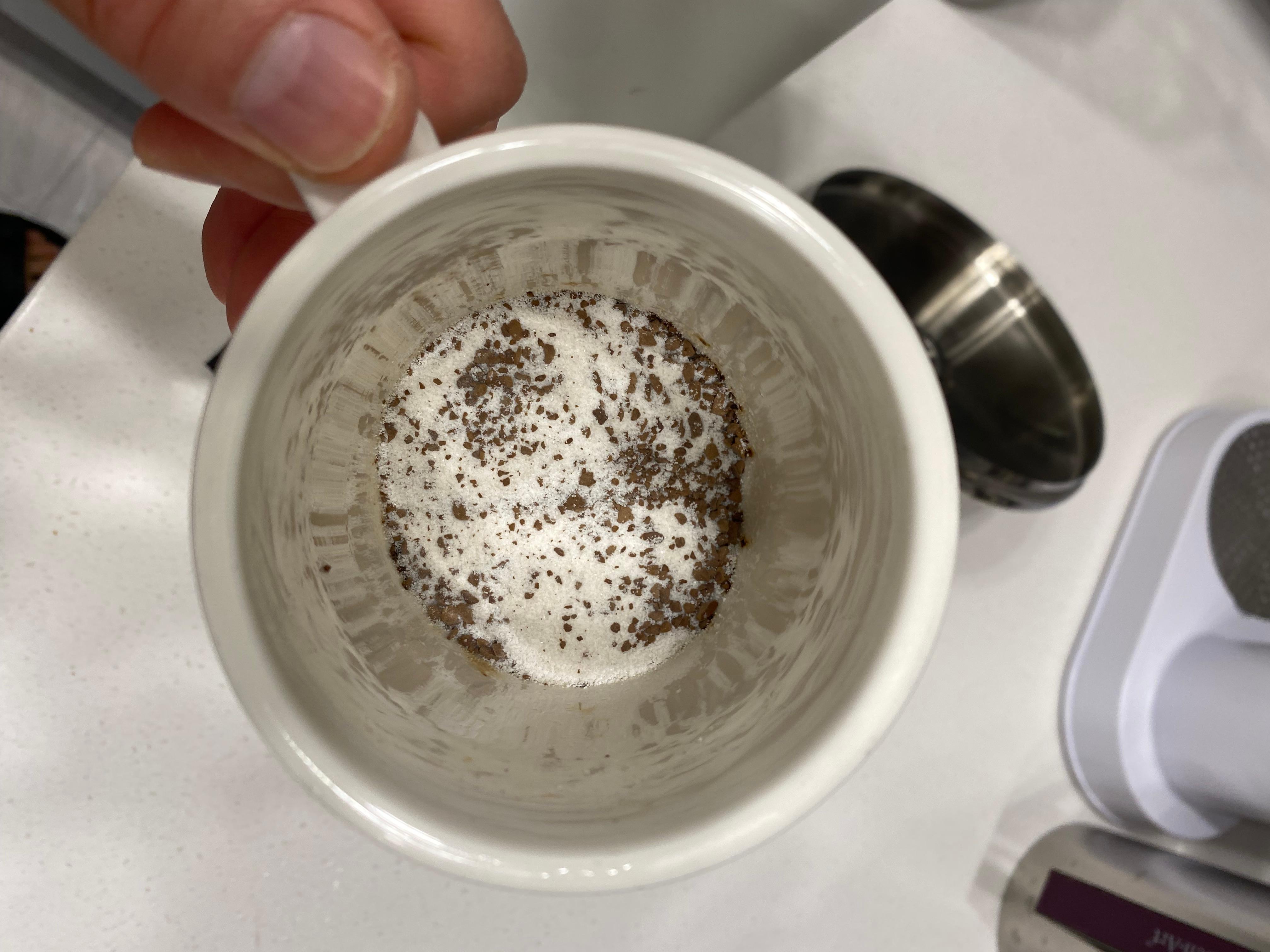 100개 그까이꺼 뭐 한번 마실 때 두 개씩 따면 두 달이면 끝나겠지 싶어서 일단 저녁 시간이라 맛보기로 하나만 따서 머그컵에 투입합니다. 눈으로 보기엔 일반적인 커피믹스 내용물과 별반 차이가 없습니다.