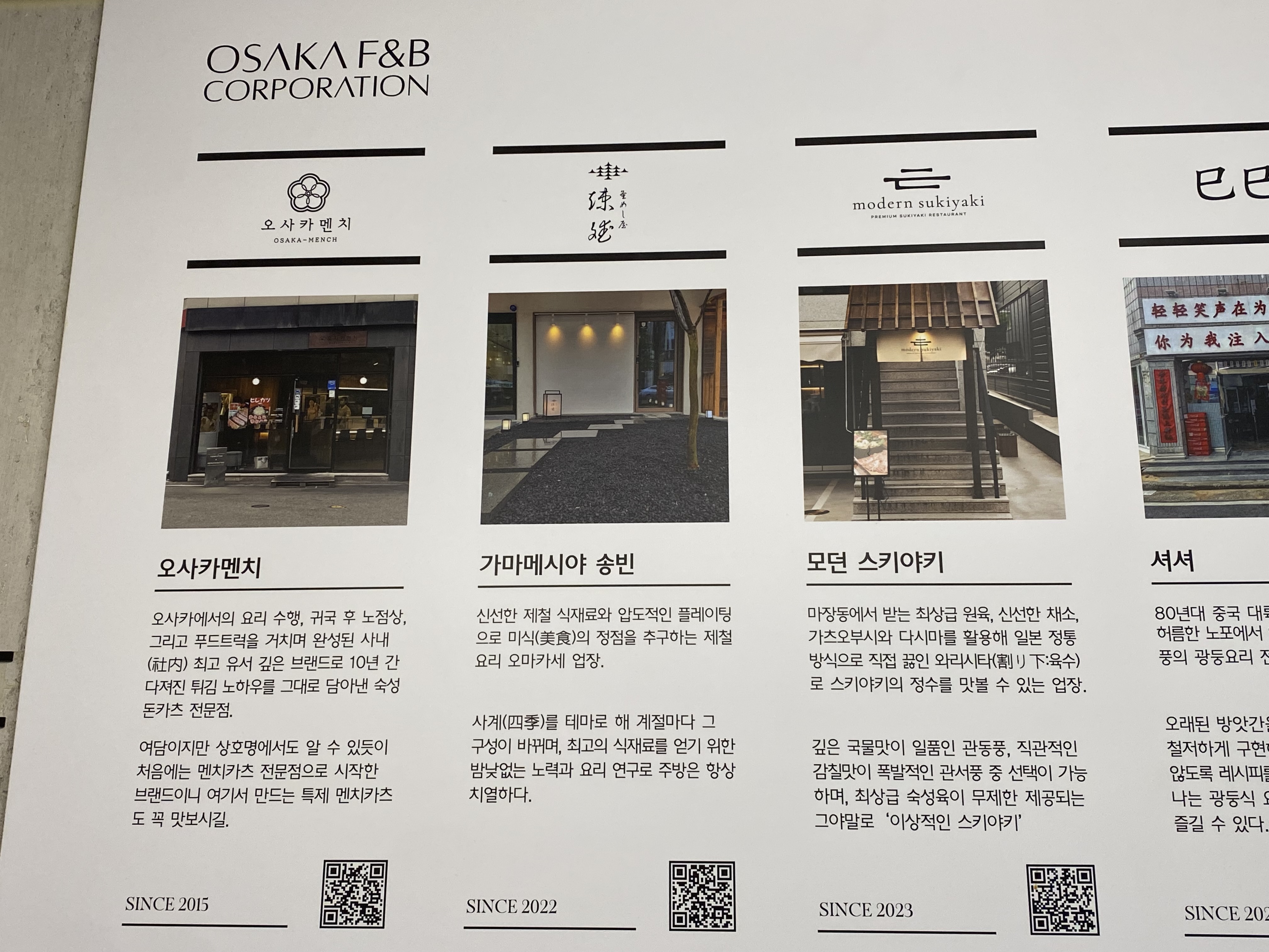 셀프 바 벽면에 오사카멘치와 함께 울산에서 운영하는 관련 식당들이 안내되어 있는데