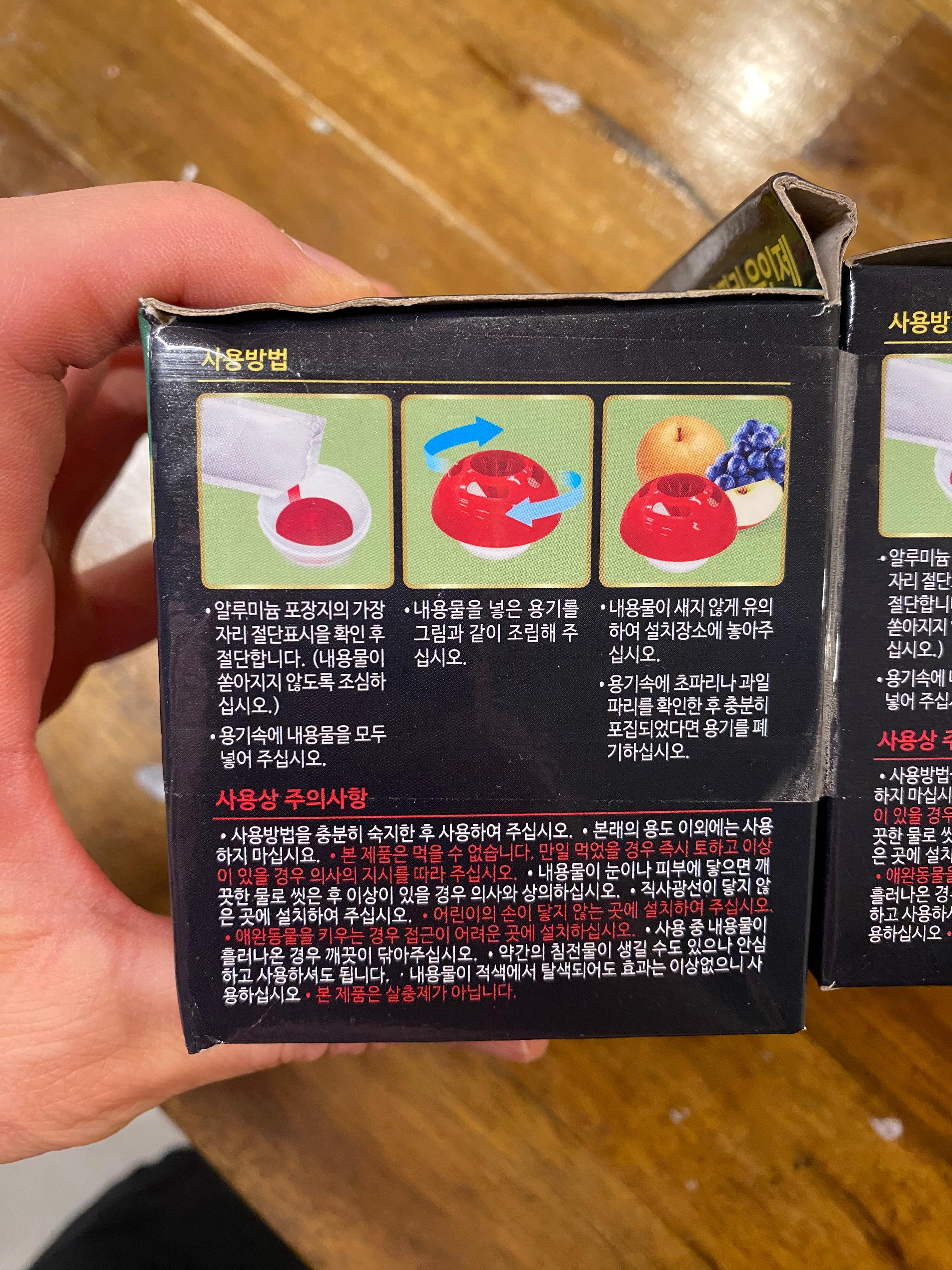 시큼한 식초 냄새가 나는 초파리 유인제를 본체에 넣어주고 뚜껑을 닫으면 끝!!
