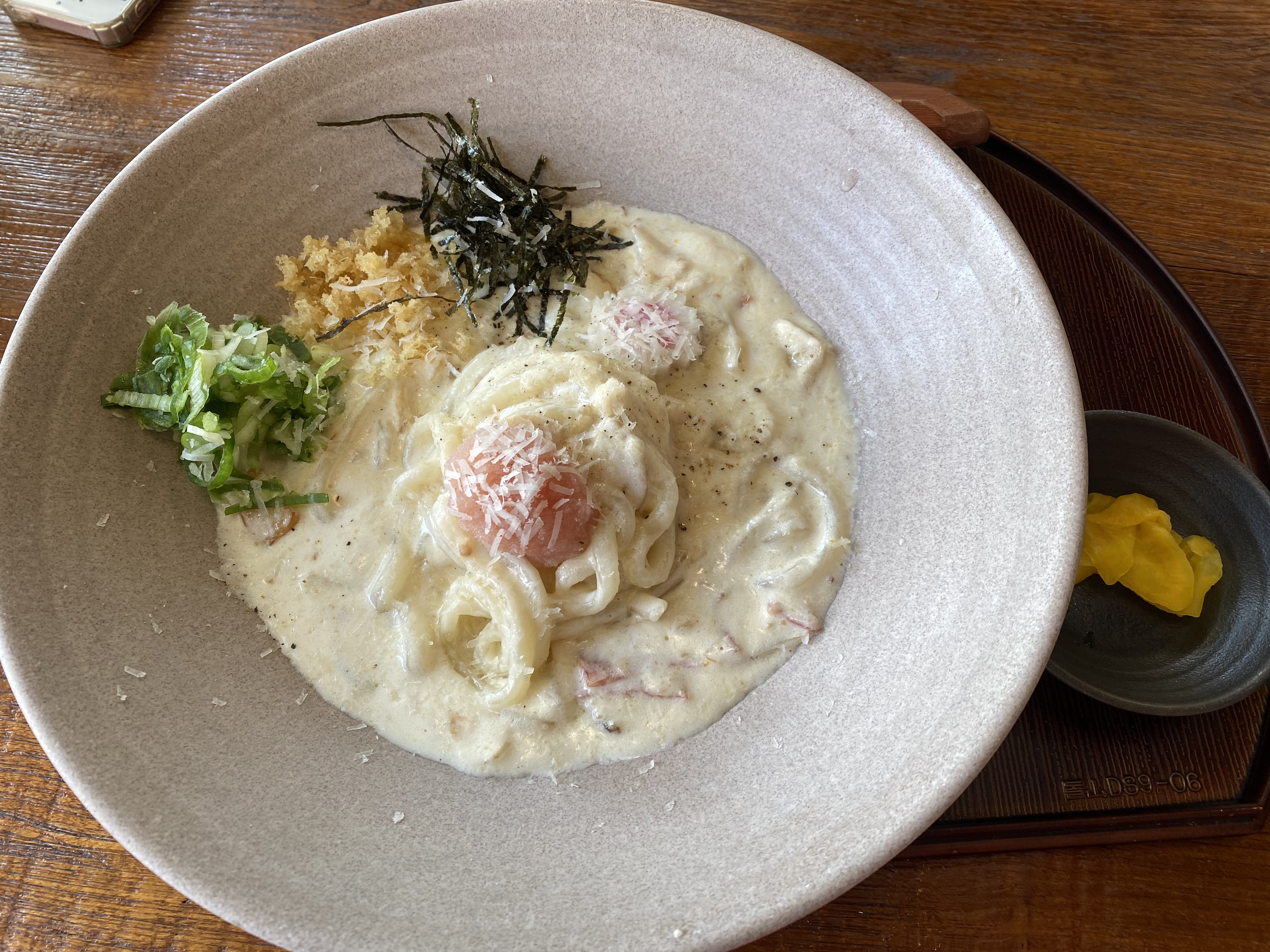 명란크림 우동이 나왔습니다.