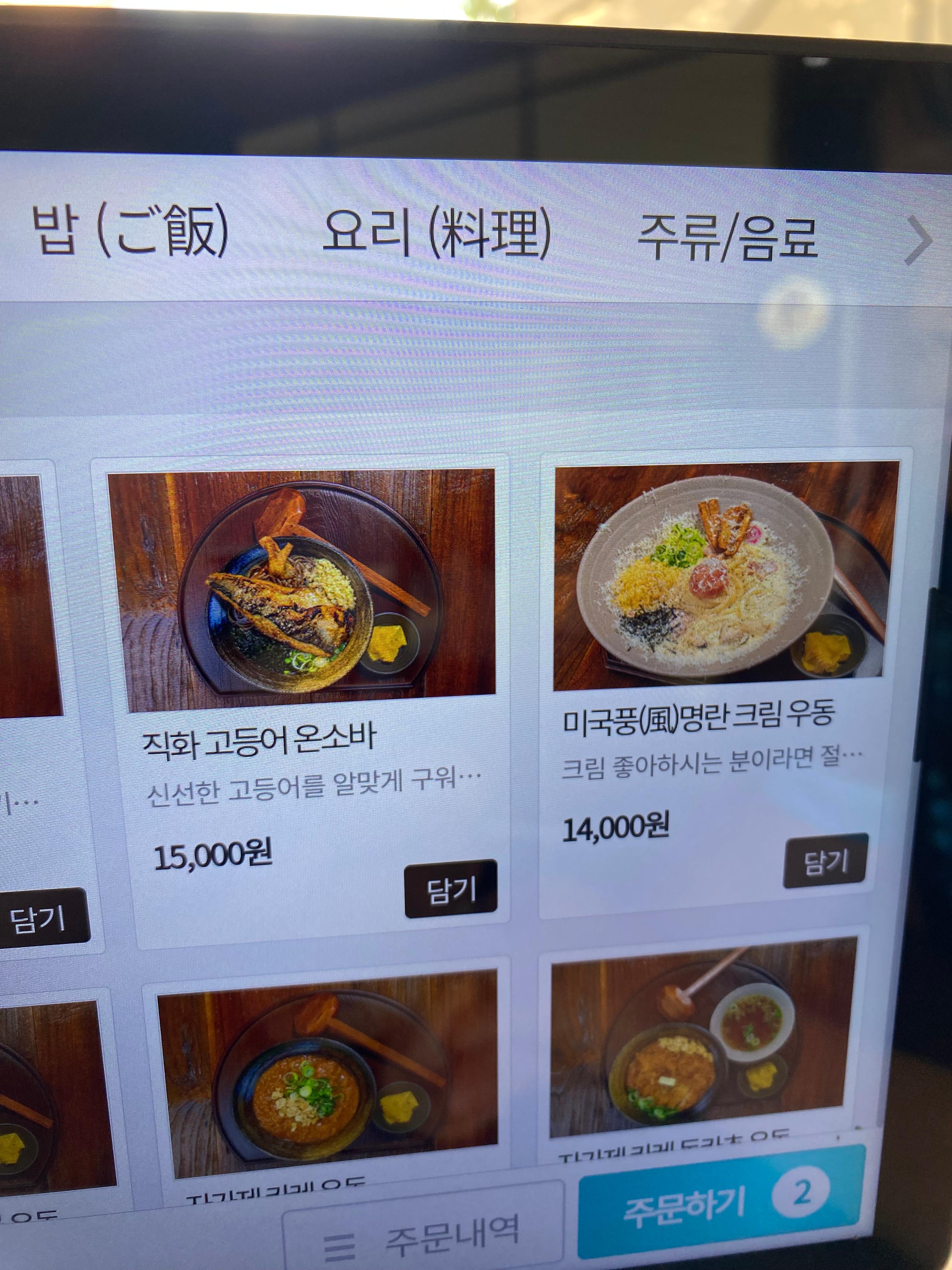 아들은 미국풍 명란 크림 우동을 주문합니다.