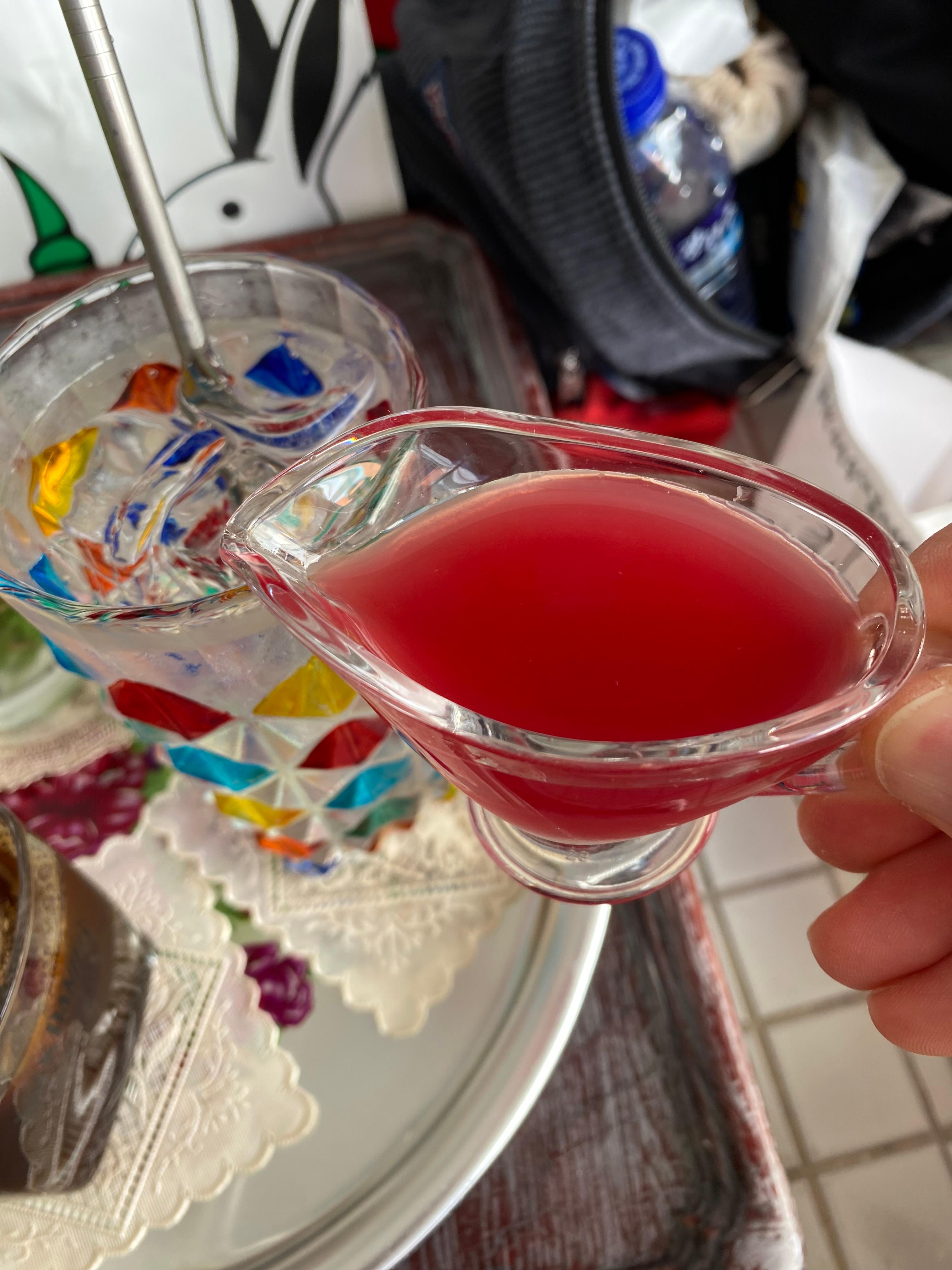 아들이 먹고 싶다고 선택한 오미자청 에이드입니다.