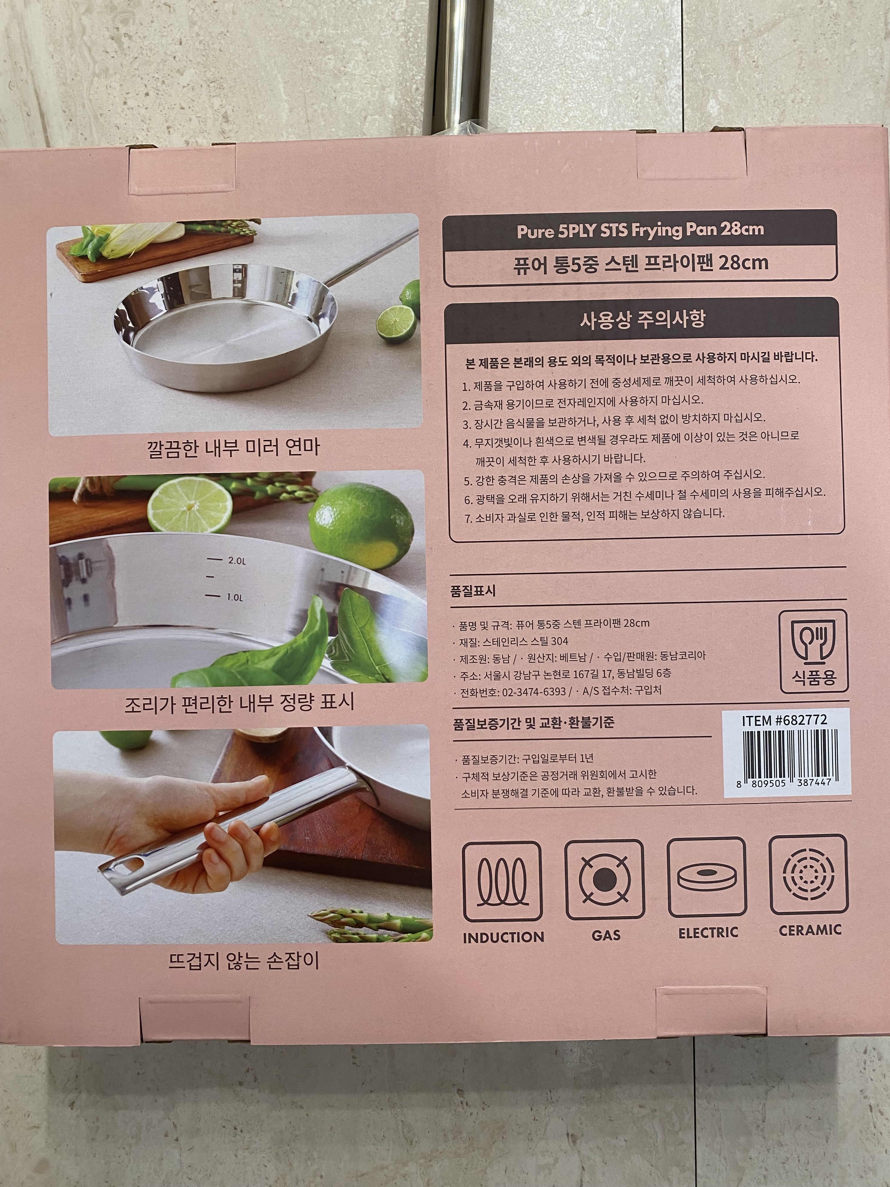 가격 대비 딱 마음에 드는 스텐 통5중 프라이팬입니다.