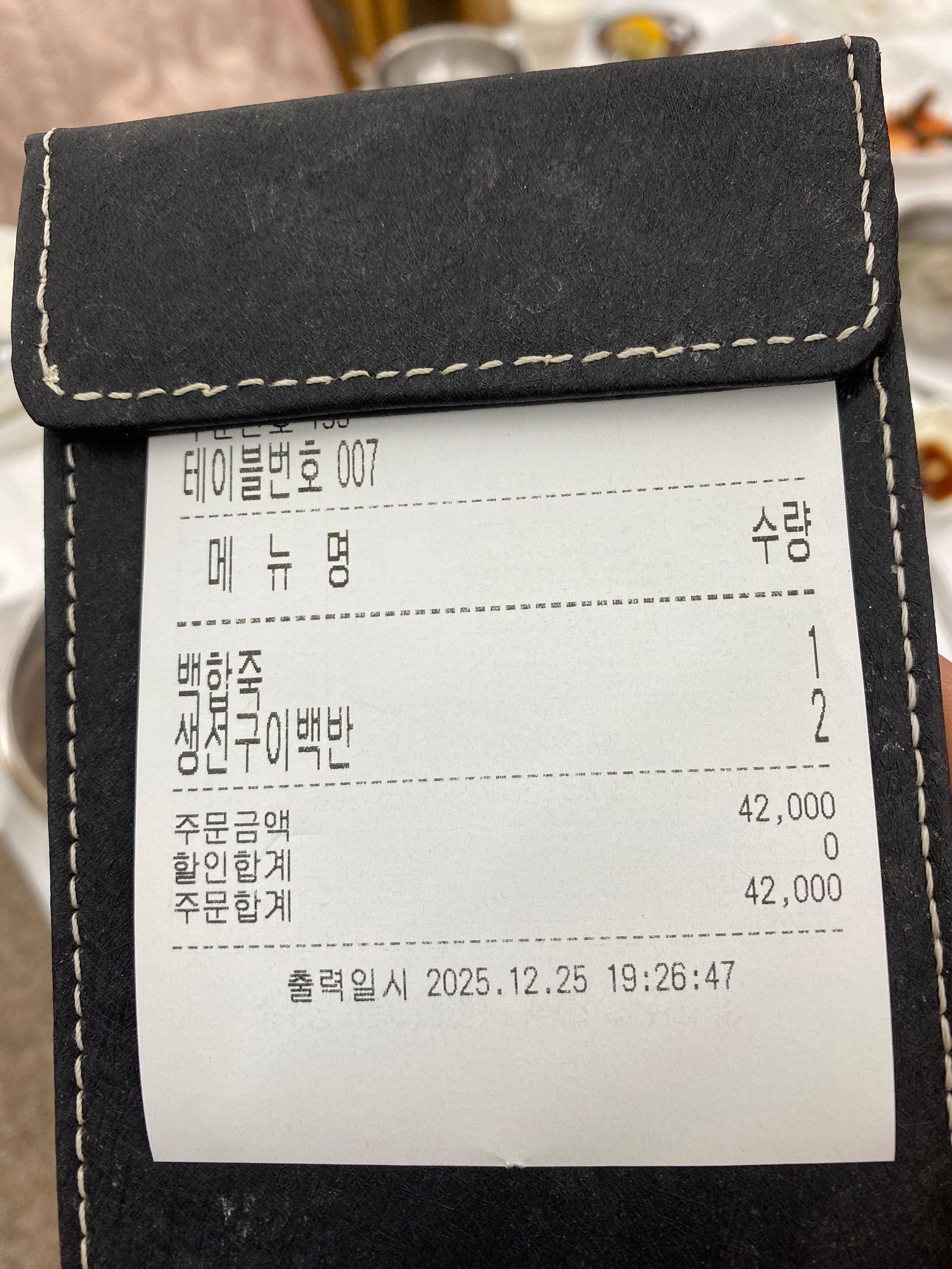 생선구이 2인분으로는 뭔가 아쉬움이 남아 백합죽을 추가 주문했습니다.