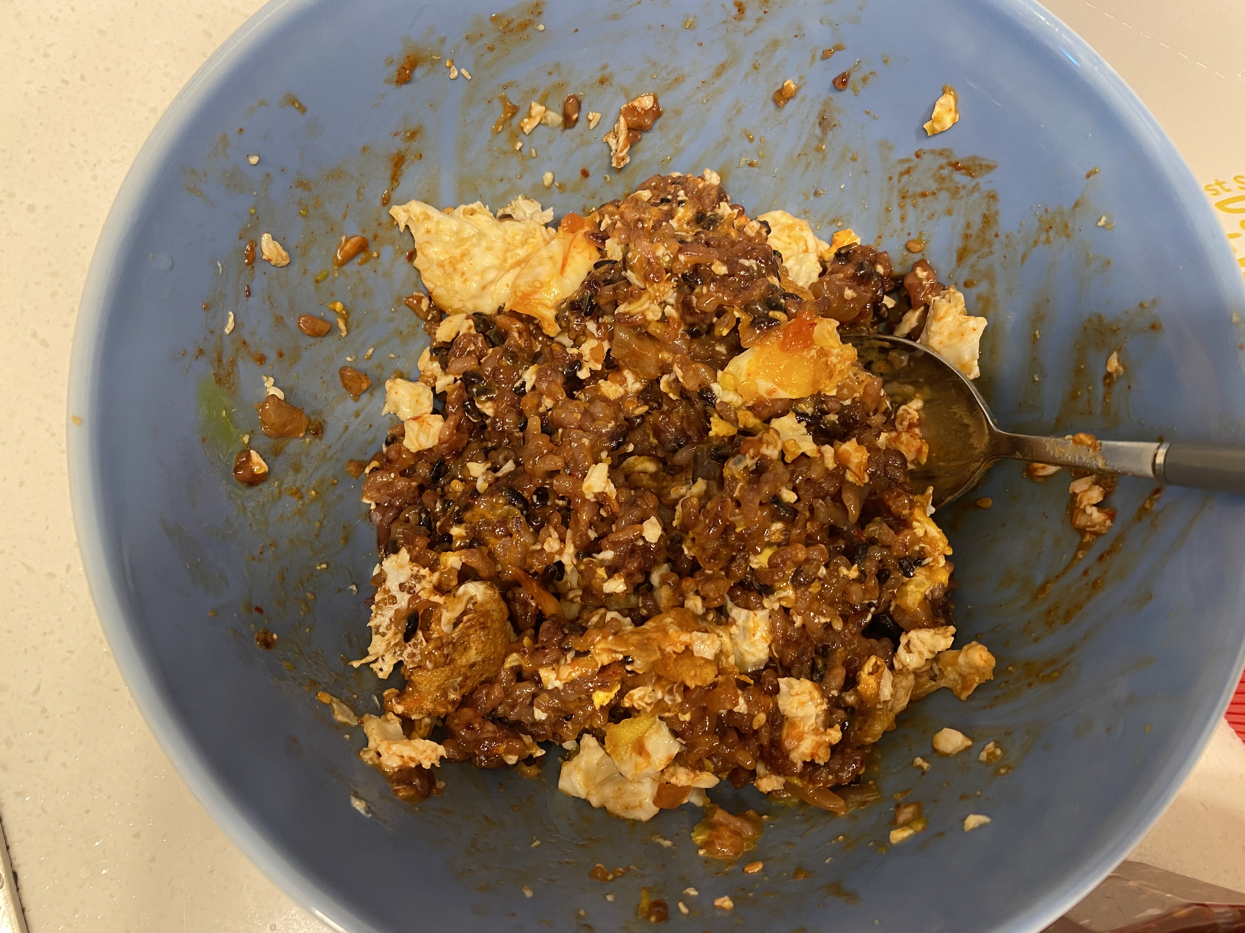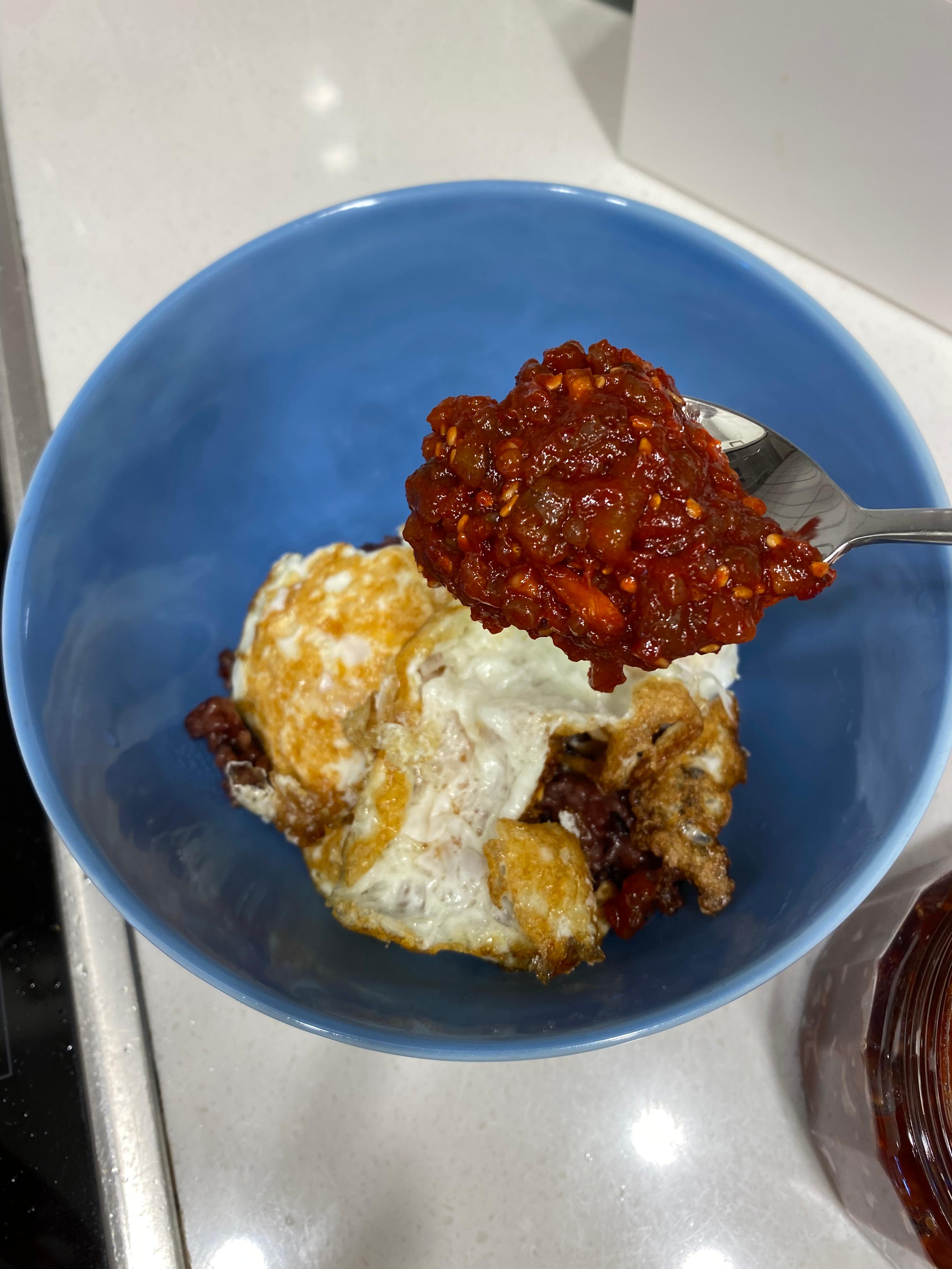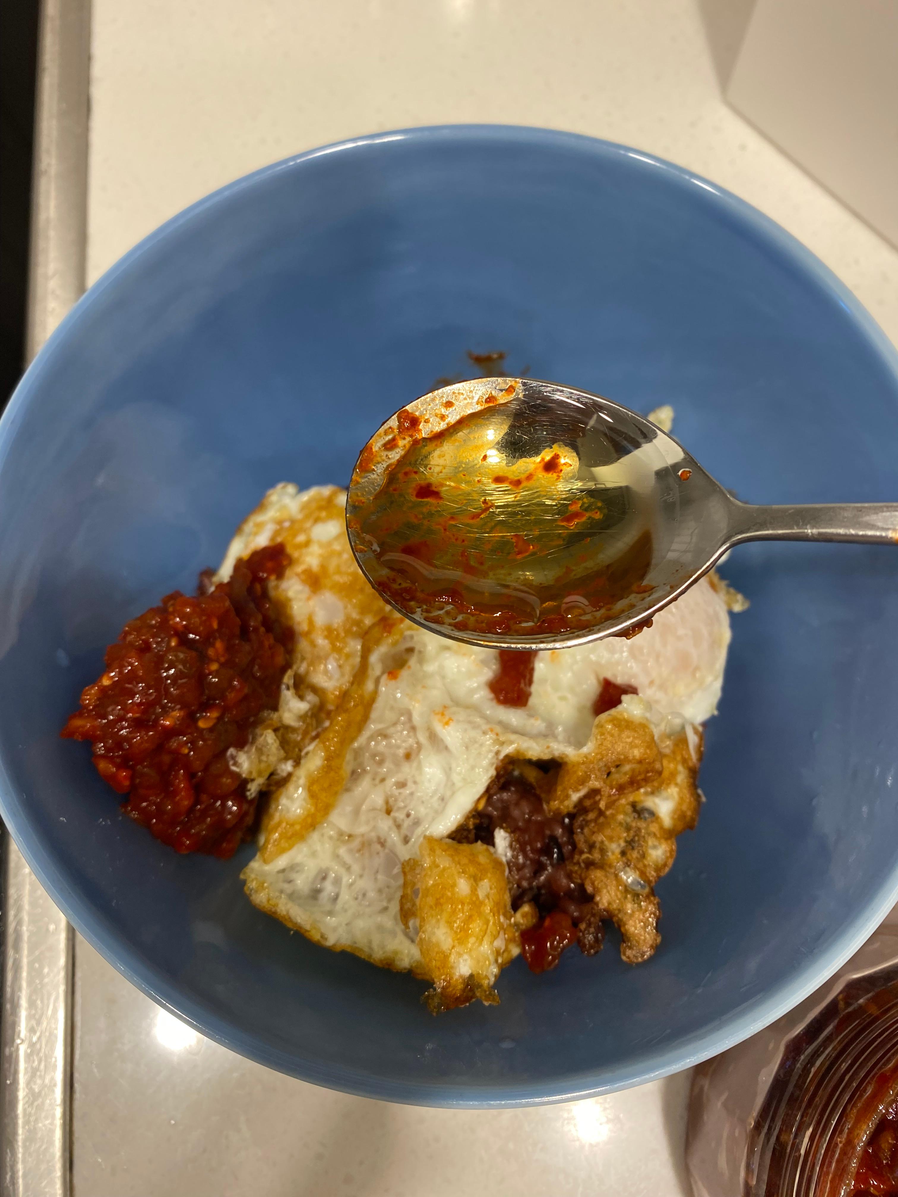 갓 지은 밥에 달걀 후라이 넣어주시고,