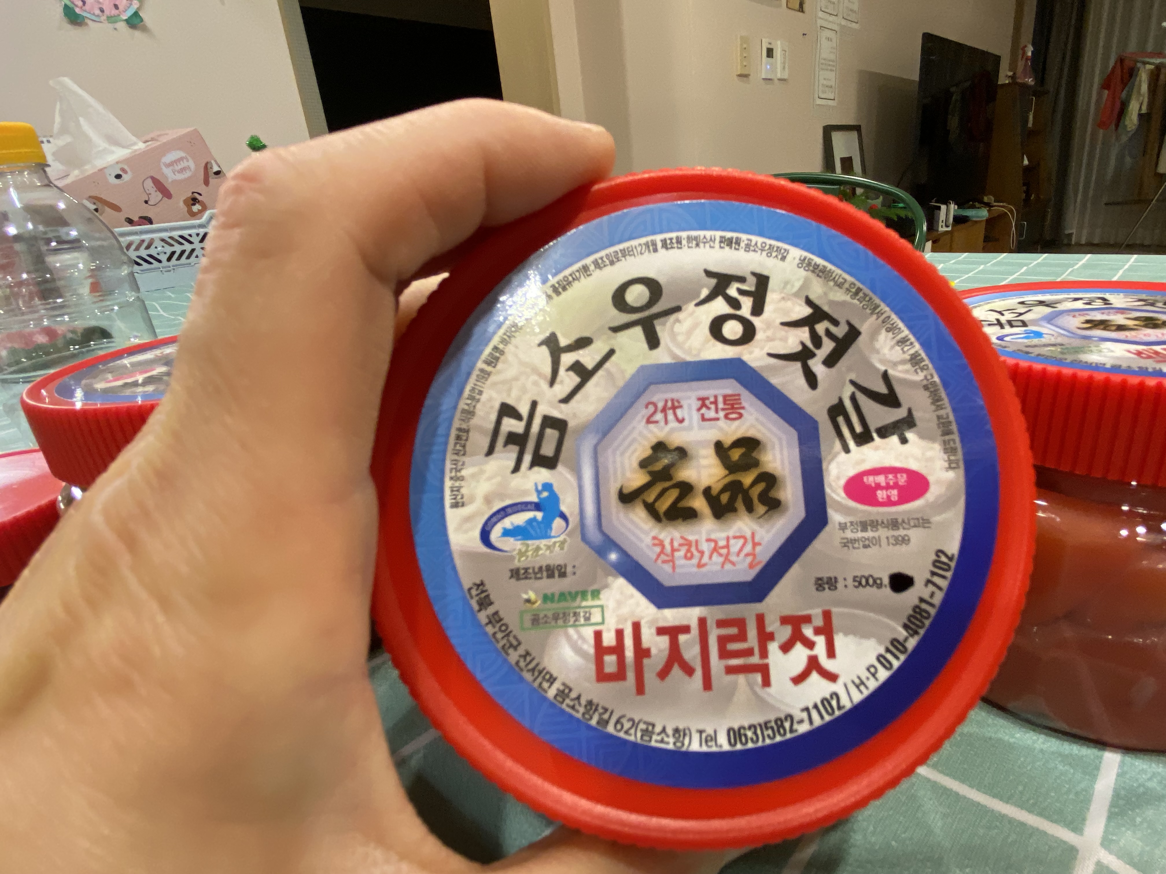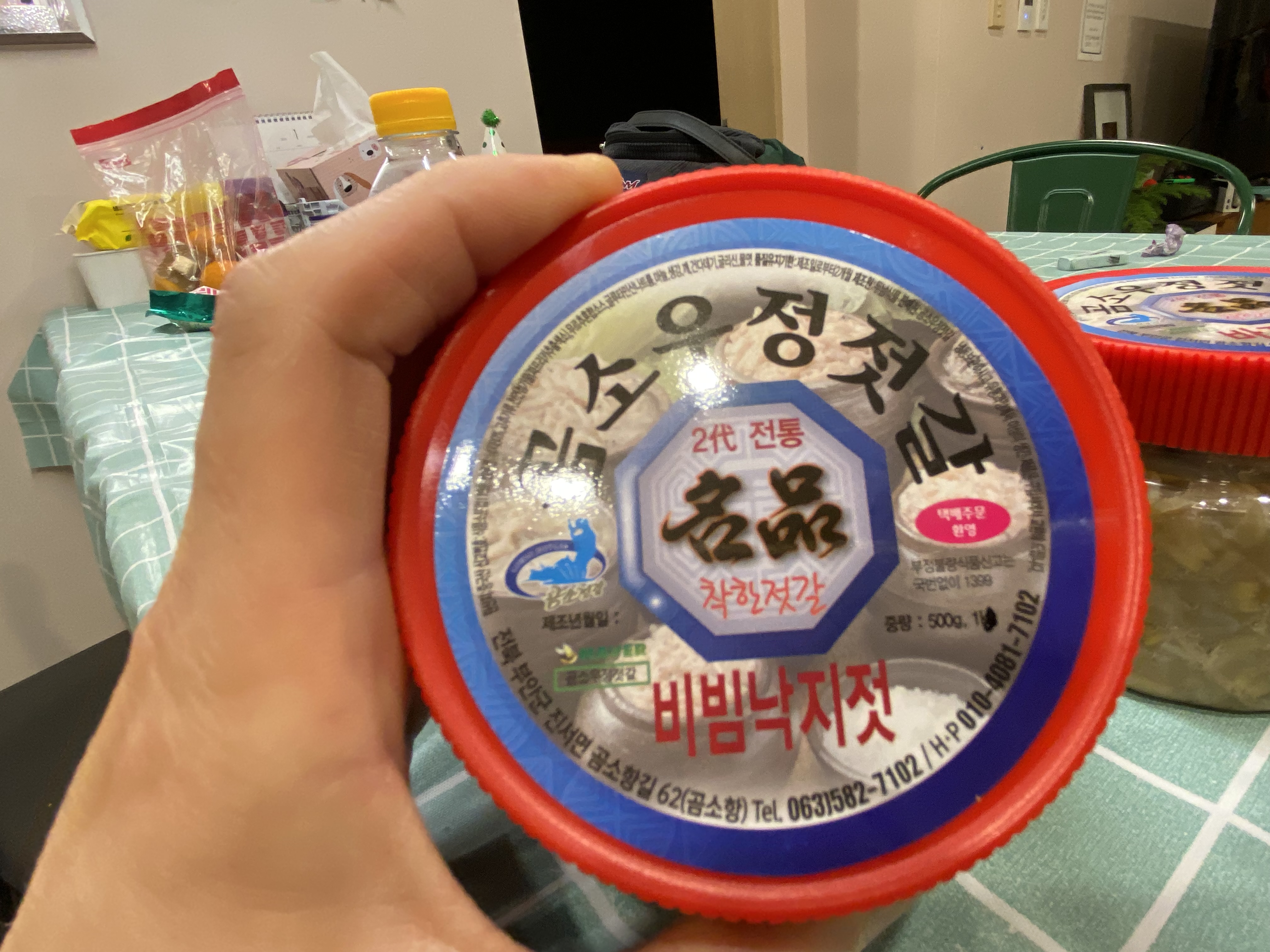 엄빠가 고른 젓갈은 명란젓, 바지락젓, 비빔낙지젓 요렇게 세 종류입니다.