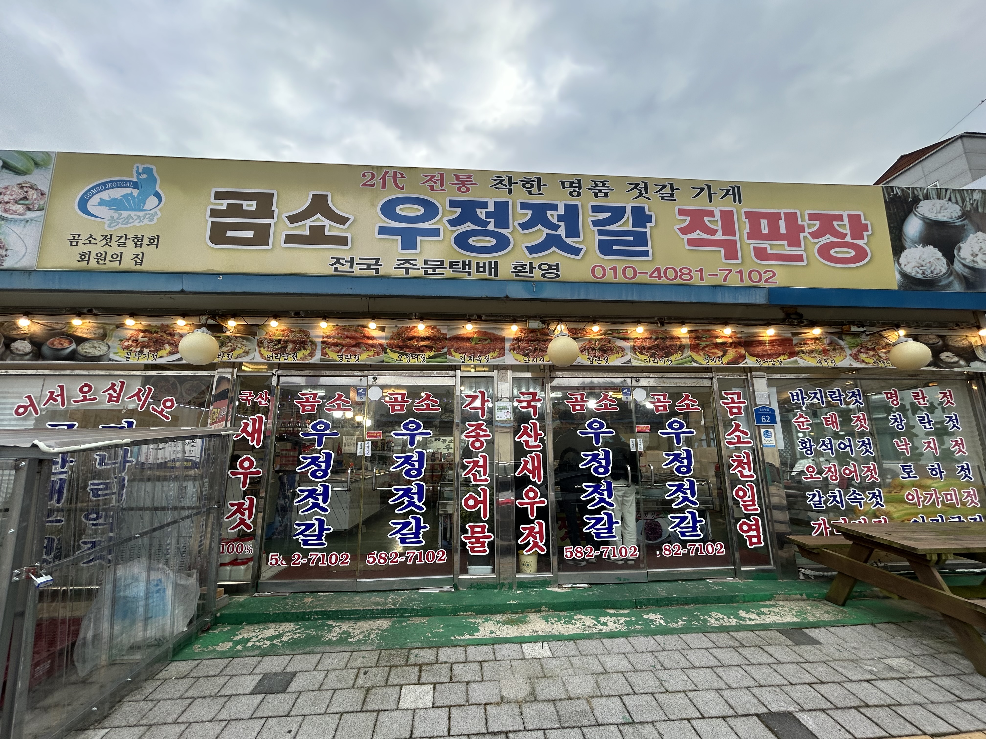 그 많은 젓갈 직판장 중에서 저희가 재방문한 곳은 '곰소우정젓갈'입니다.