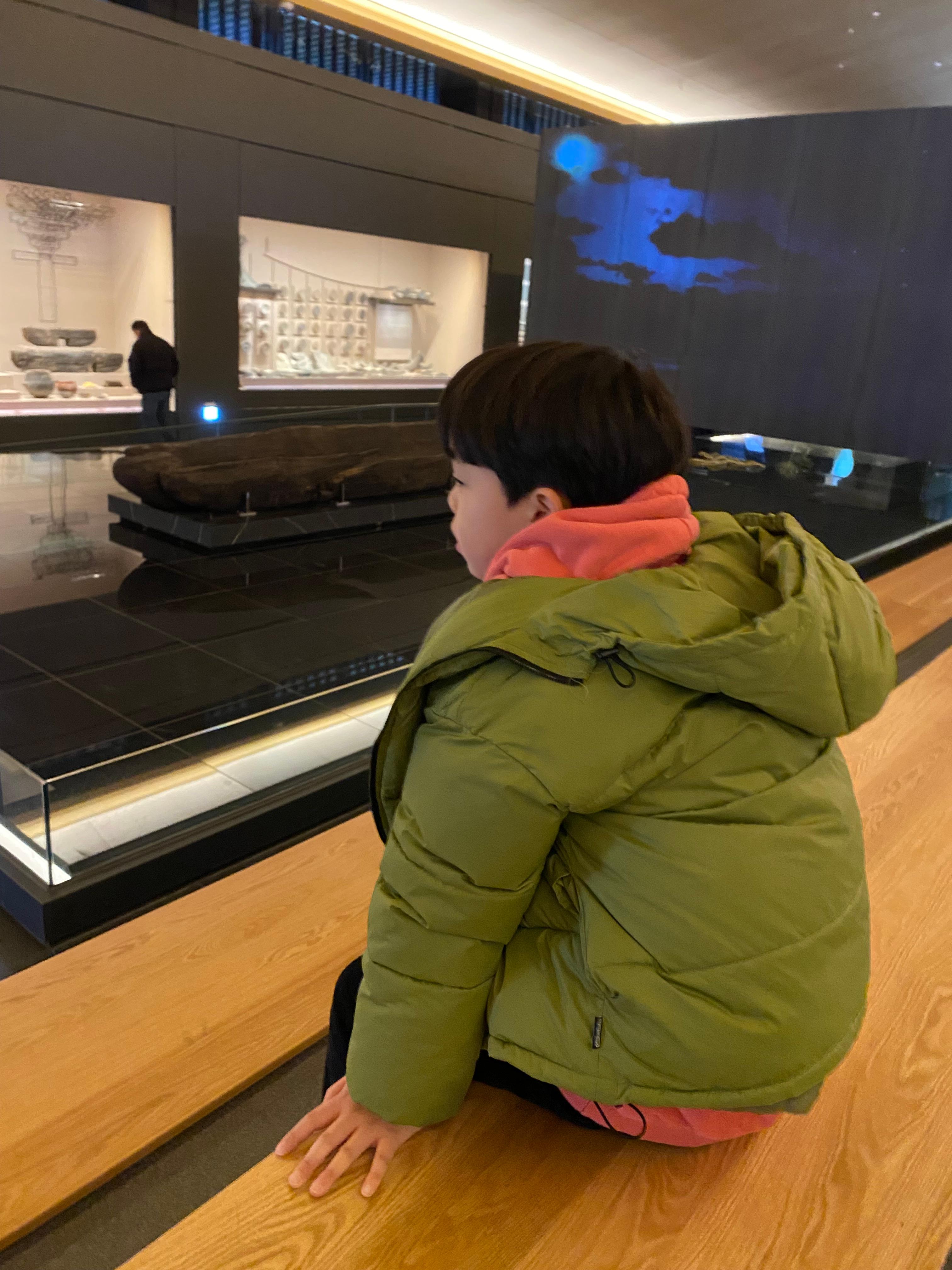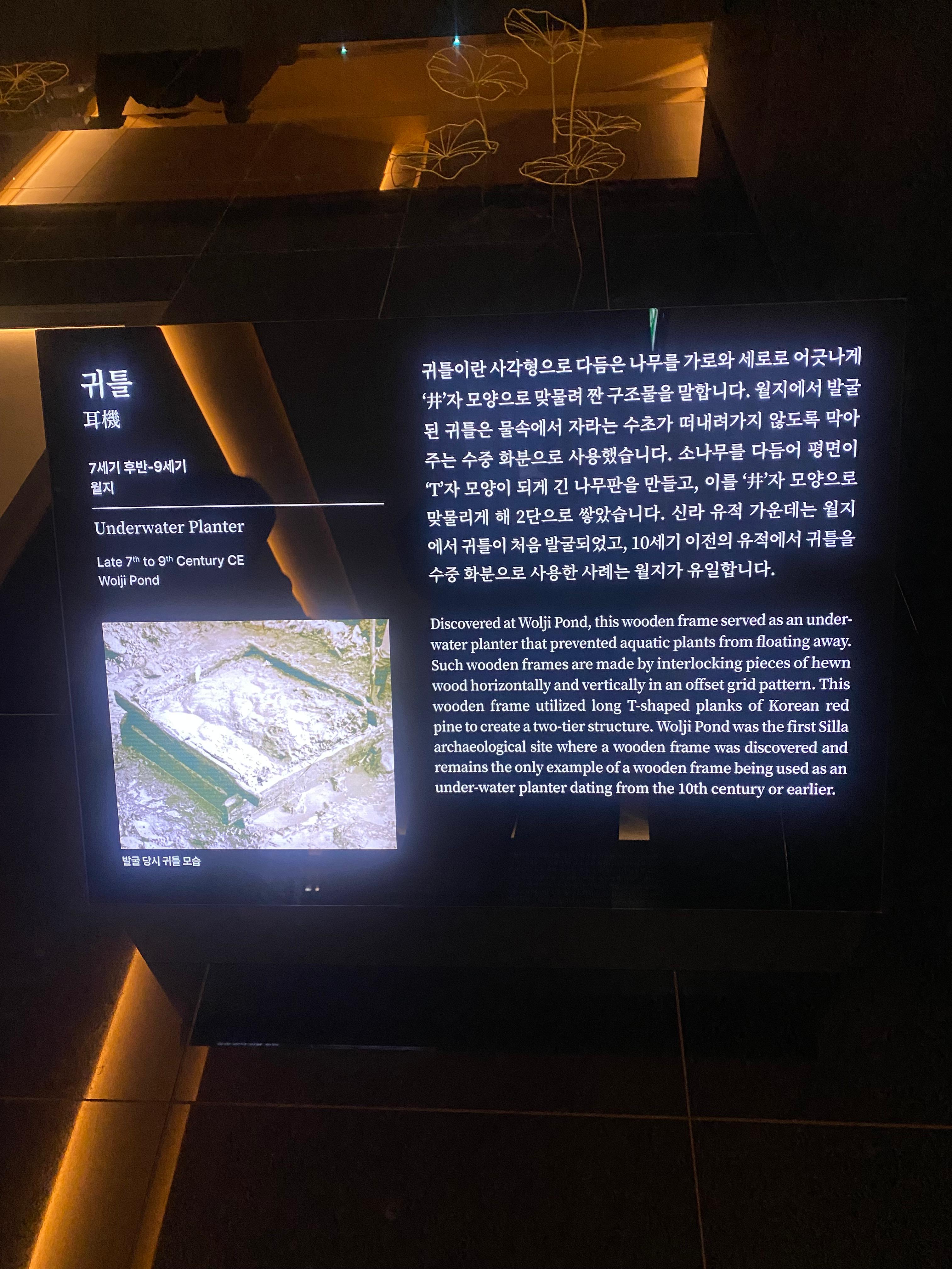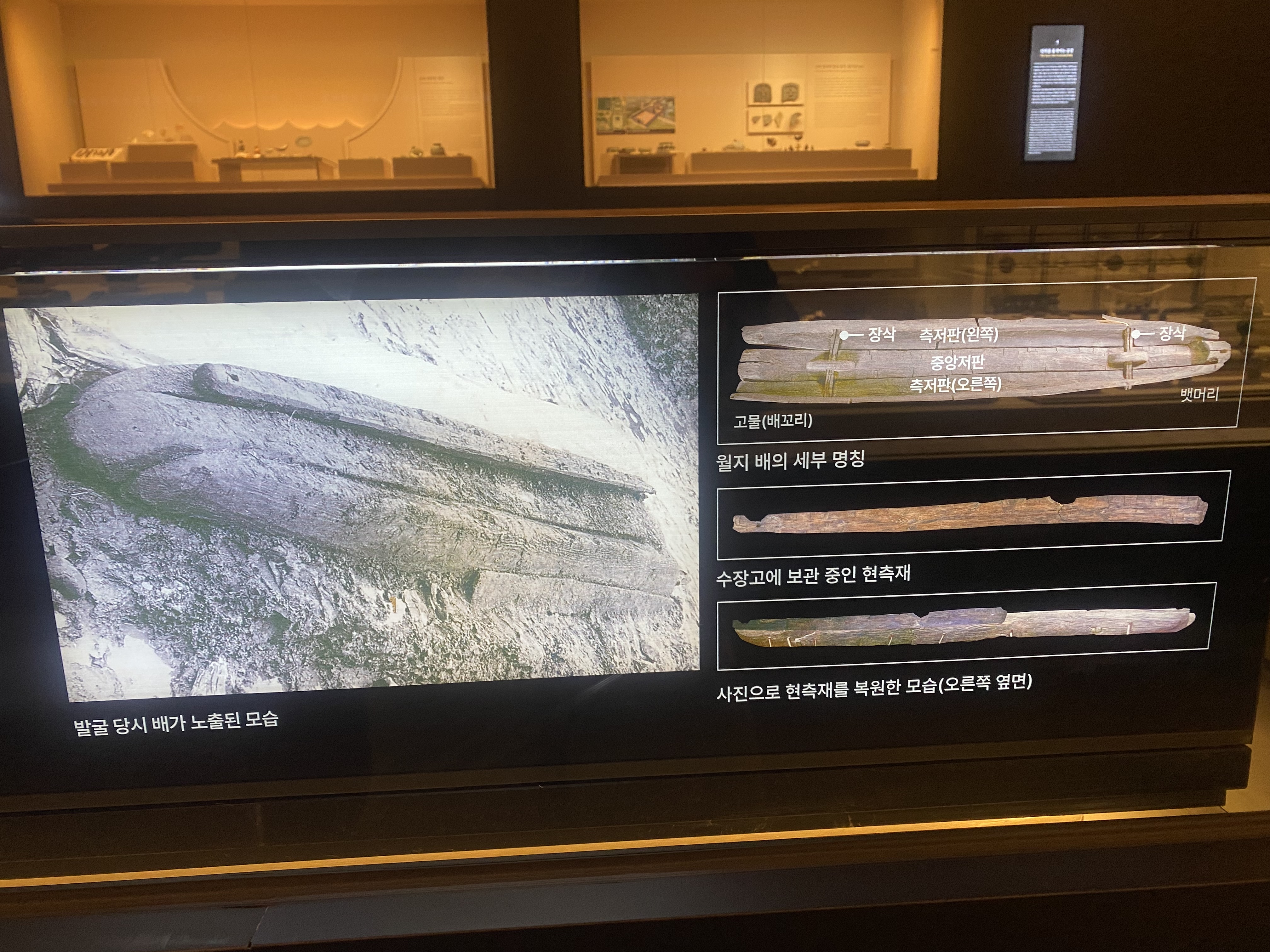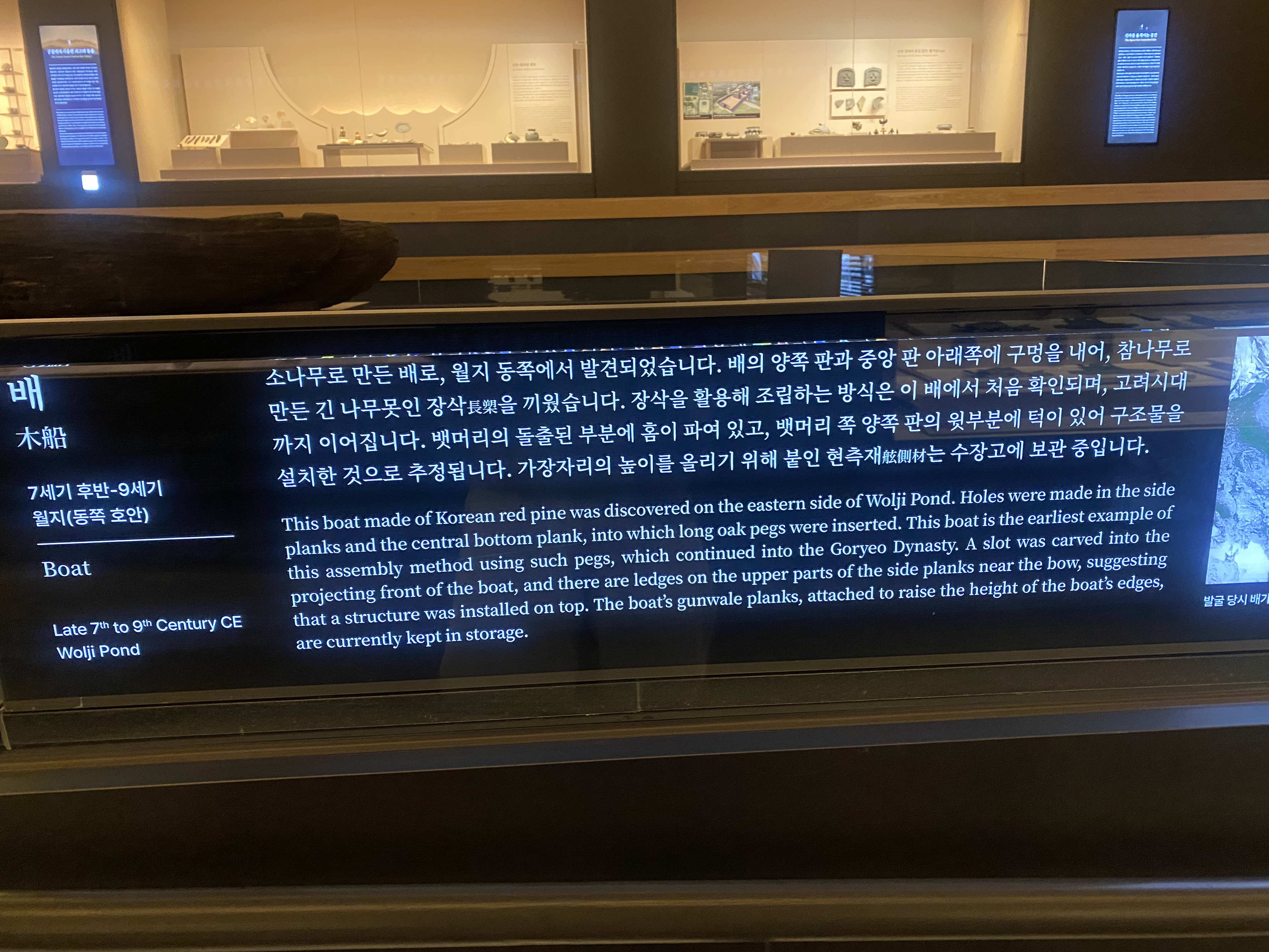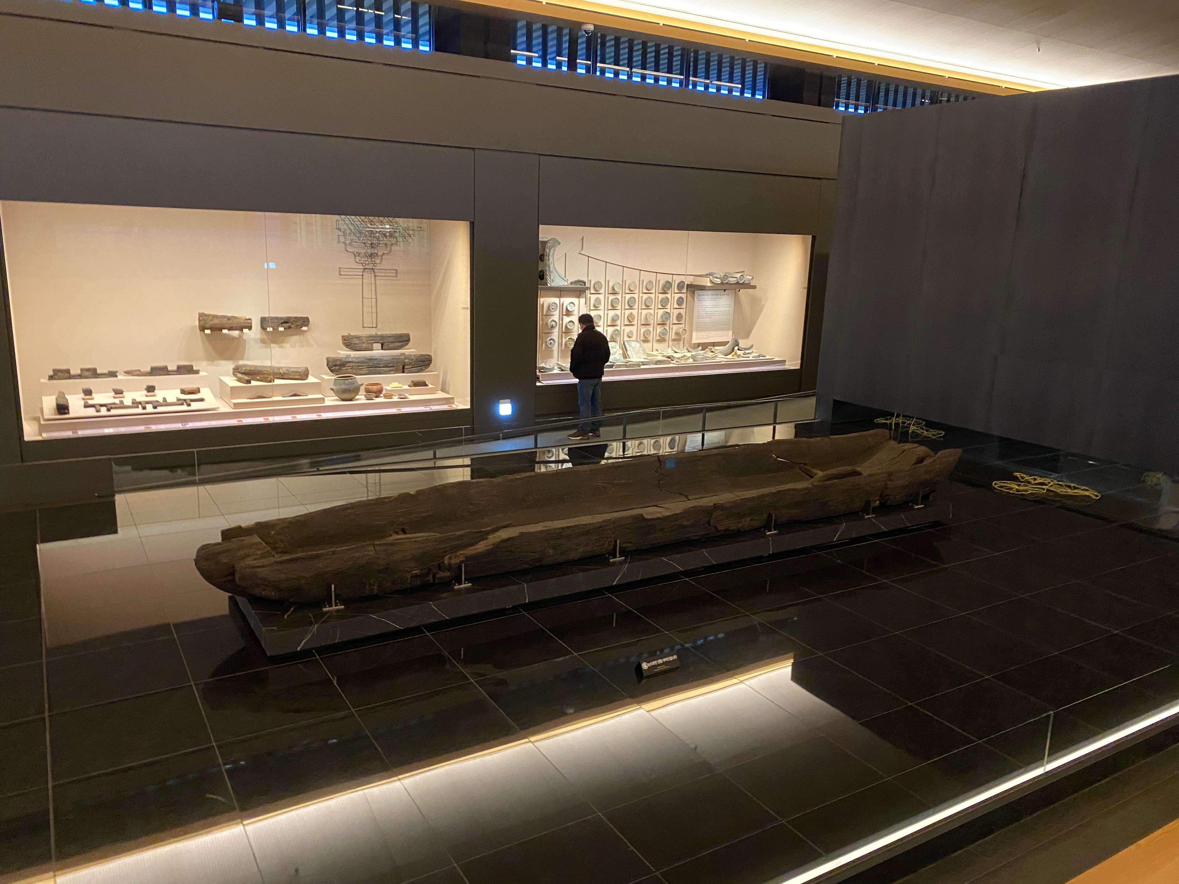 그리고 메인 홀에는 월지에서 발견된 소나무로 만든 배가 전시되어 있습니다.