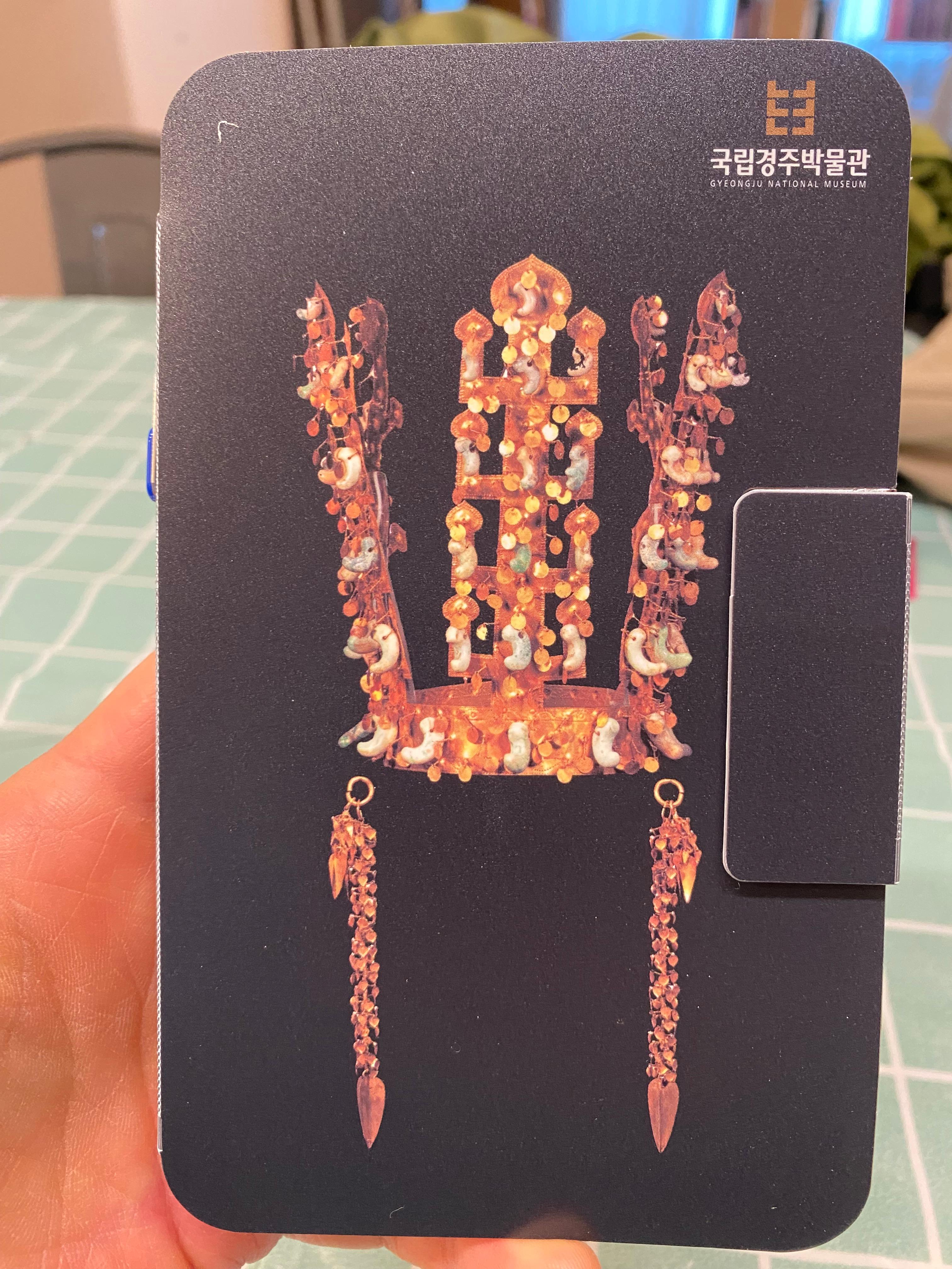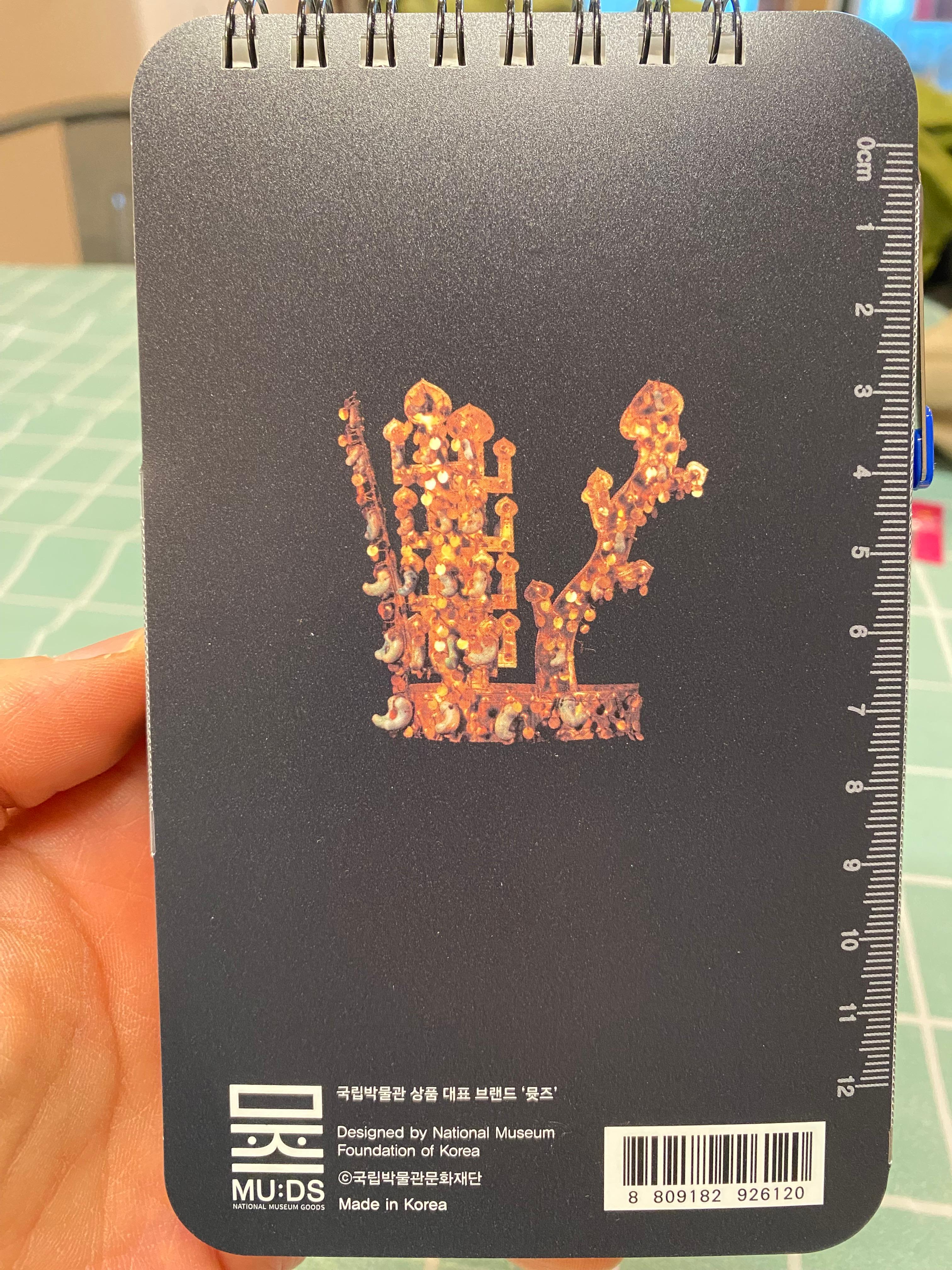 두 번째로 구입한 뮷즈는 금관 수첩 되겠습니다.