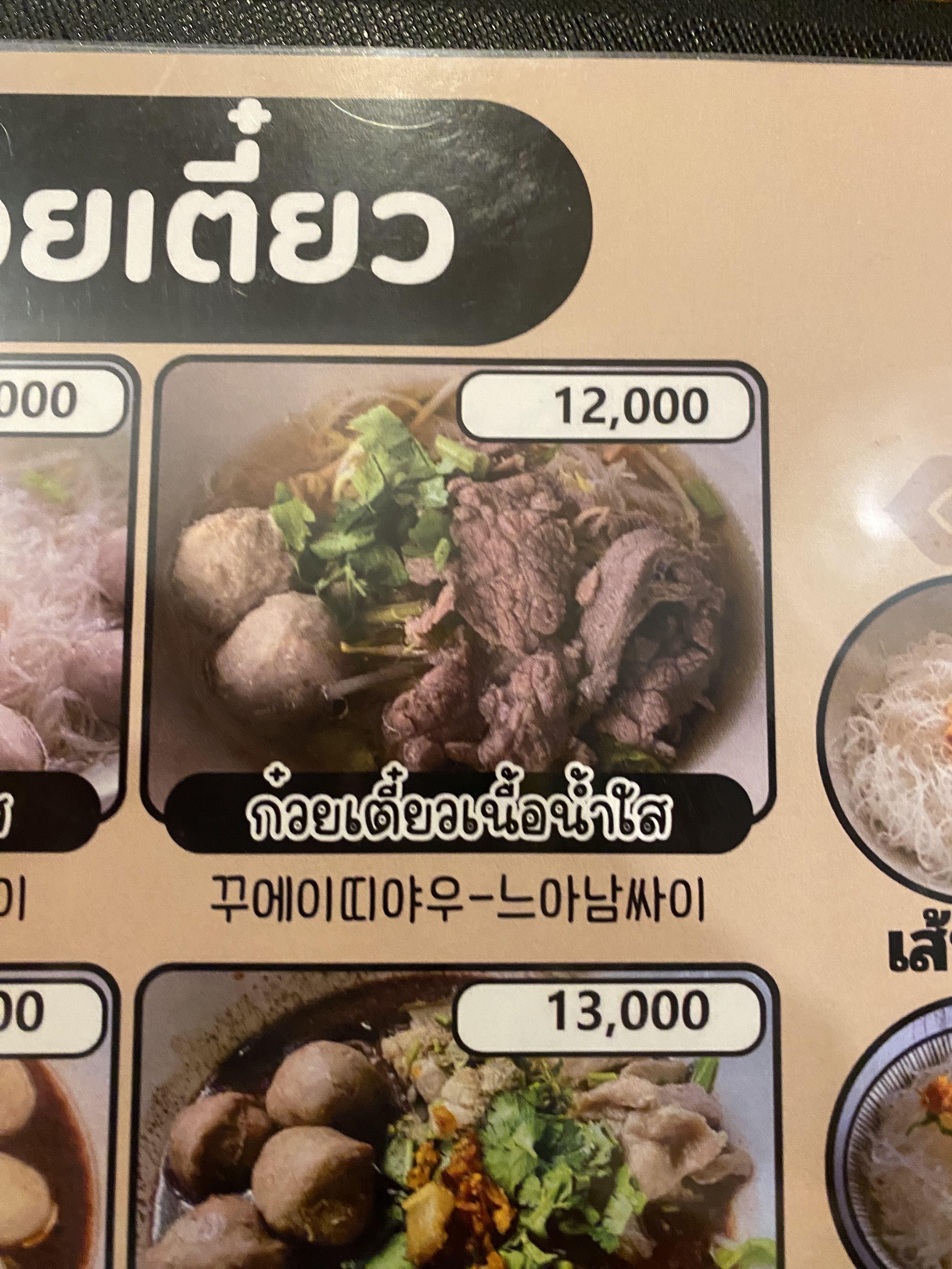 아들은 태국 쌀국수 꾸에이띠야우-느아남싸이 주문했습니다.