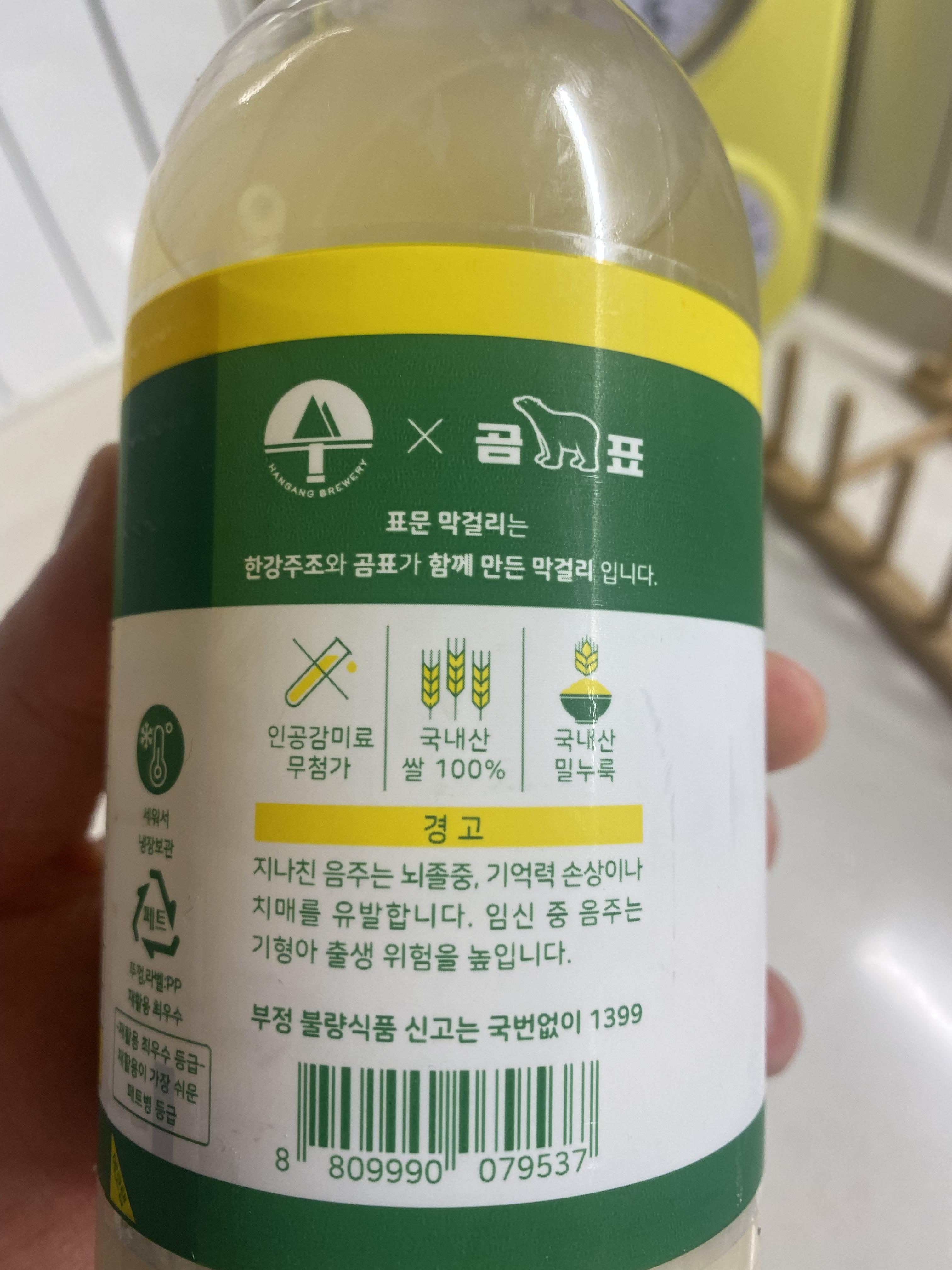 음.... 밀이 들어가 있다는 설명에 왠지 좀 망설여졌지만 국내산 쌀 100퍼라니께... 무엇보다 가격이 4,500원짜리 막걸리니께~~ 믿었지요. 곰표 아닙니까? 믿고 또 믿으며 한 잔, 두 잔을 마시는데... 야... 이거 이거... 아무리 쌀 막걸리라고 하지만 밀 막걸리 특유의 텁텁한 뒤끝 맛이 나는 게~ 뭐지?? 이 느낌적 느낌~~!! 이거 소싯적 밀 막걸리만 시중에서 판매할 때 맛봤던 그때 그 시절 막걸리 맛이 확 납니다. 세 잔째 마시면서 와~ 이거 더 이상 마시면 안 되겠구나 ~ 생각했습니다. 첨엔 부드러운 쌀 막걸리 맛이 나더니 뒤 끝 맛에서 텁텁한 밀 막걸리 그 맛이 계속 올라오면서 잔을 놓게 되더군요. 지극히 개인 입맛의 차이라 긍정적이고 극찬에 가까운 막걸리 호평이 이어지는 글도 있을 수도 있겠지만 전 밀 막걸리 정말 싫어해서 표문 막걸리도 추천하는 글은 사양하도록 하겠습니다. 무엇보다 가격과 양에서 이건 도저히 4,500원짜리 막걸리라고 할 수 없습니다. 대대포 막걸리가 3,800원에 600ml인데 요건 그래도 맛에 있어서 주변 사람들께 강력 추천하는 그야말로 가격이 깡패급이지만 맛은 인정을 안 할 수 없는 그런 막걸리거든요. 표문 막걸리는 양과 맛에 있어서 가격을 뛰어넘는 그런 납득할만한 맛을 보여주지 못해서 평을 좋게 달수가 없습니다. 지금 당장에라도 2,000원 가격에 판다면.... 다시 한번 냉정하게 재구매해서 맛 평가를 해보겠습니다. 암튼 표문 막걸리는 너무 대실망!!!