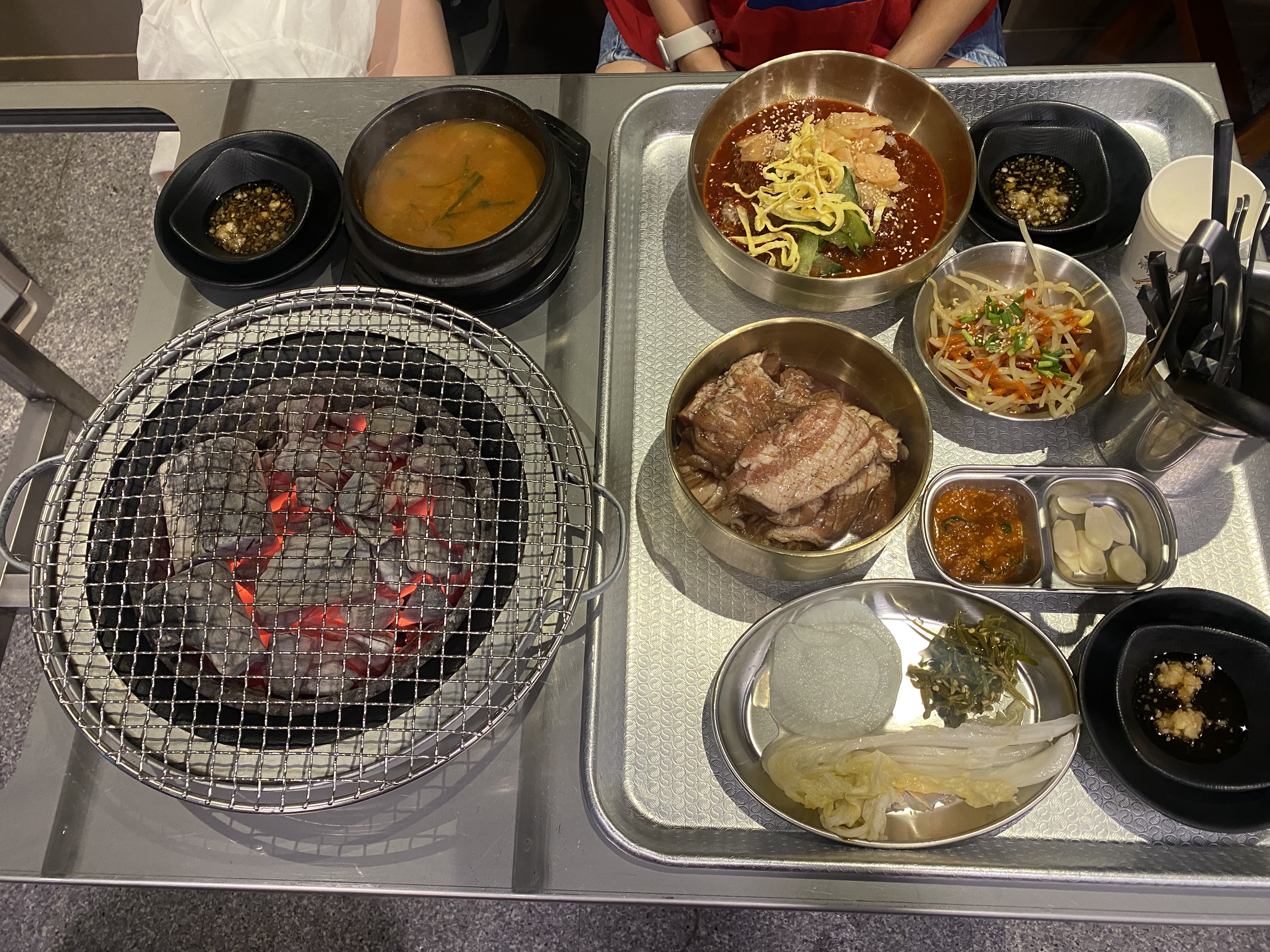 그렇게 주문을 하고도 한상 차림이 나오기까지는 제법 기다려야 했습니다. 배고픔 속에 다크서클 한가득한 직원들의 안타까운 모습을 바라보다 드디어 푸짐한 차림이 세팅되었답니다.